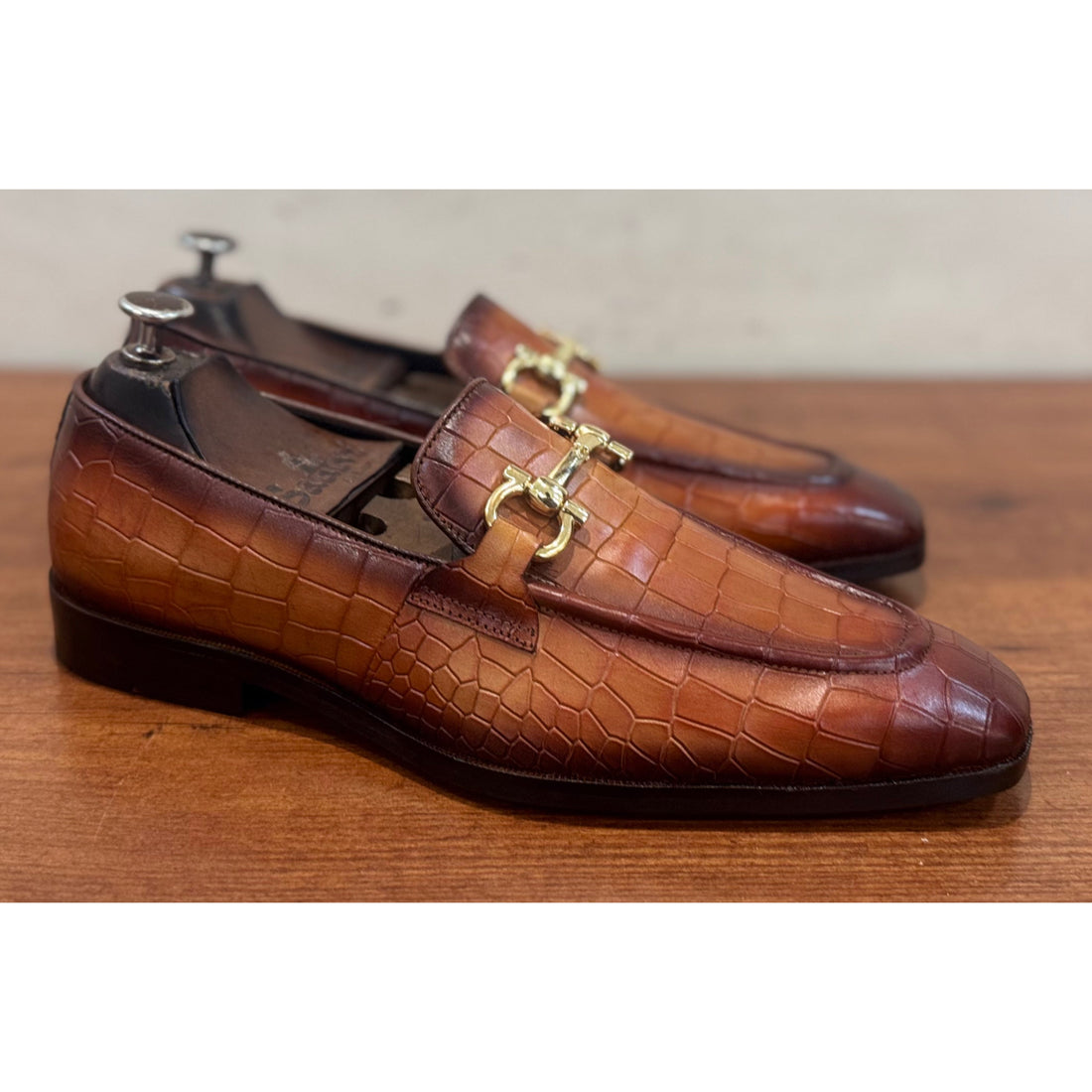 Tan Croco Loafers Horsebit Hand Finished