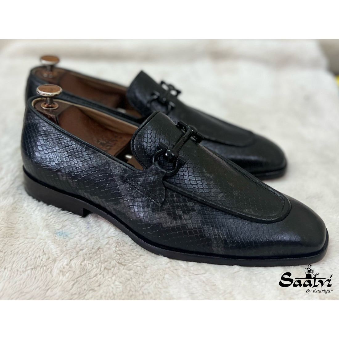Snake Embossed Loafers Black