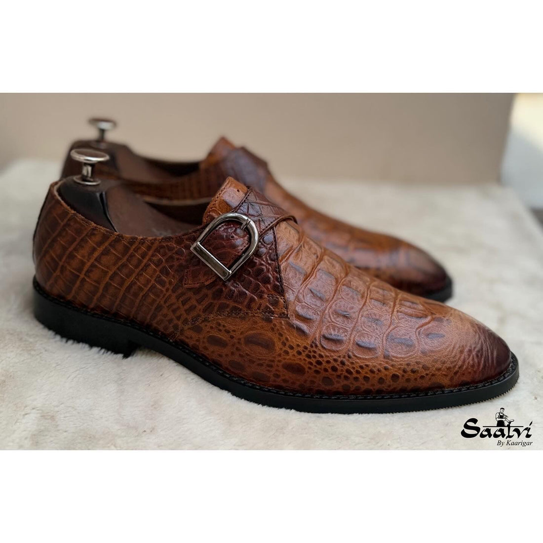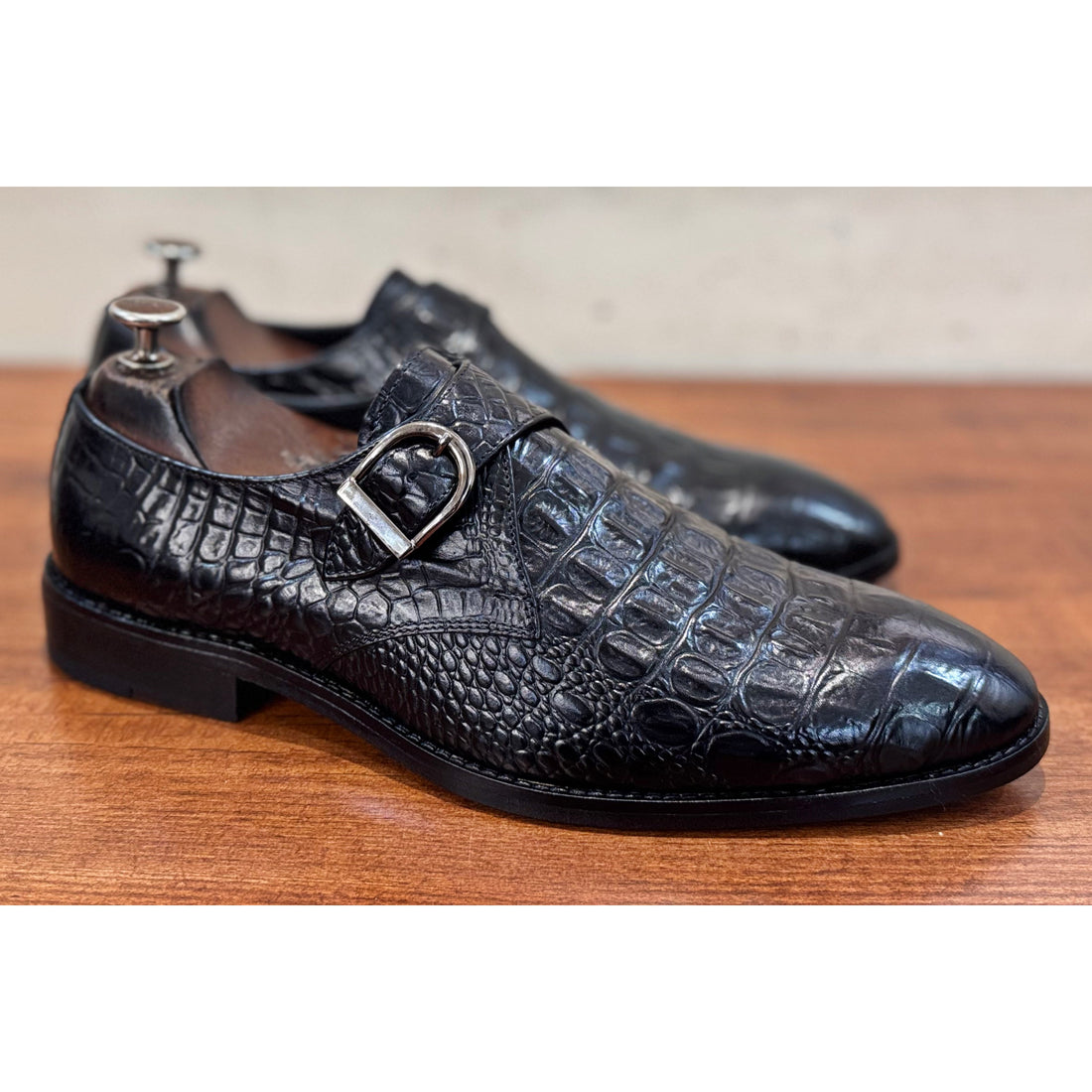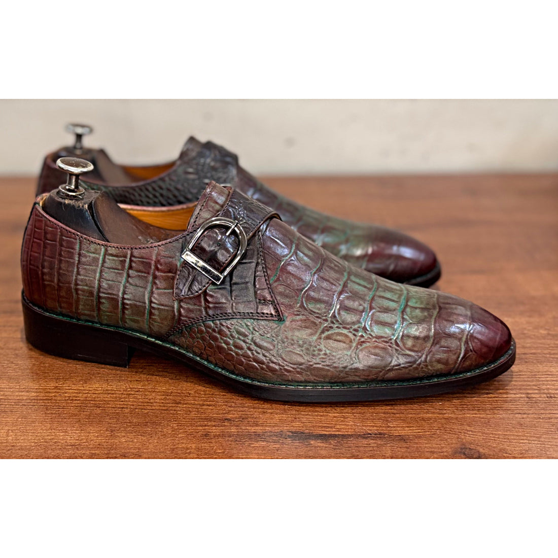 Double Monk Strap Croco Hand Finished