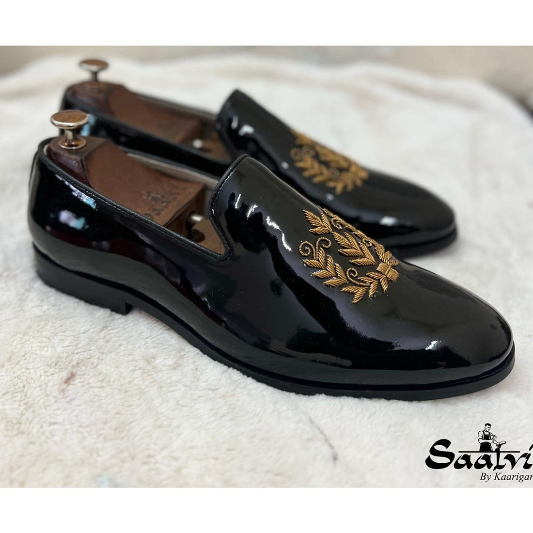 Black Patent Lion Zardosi Slipons