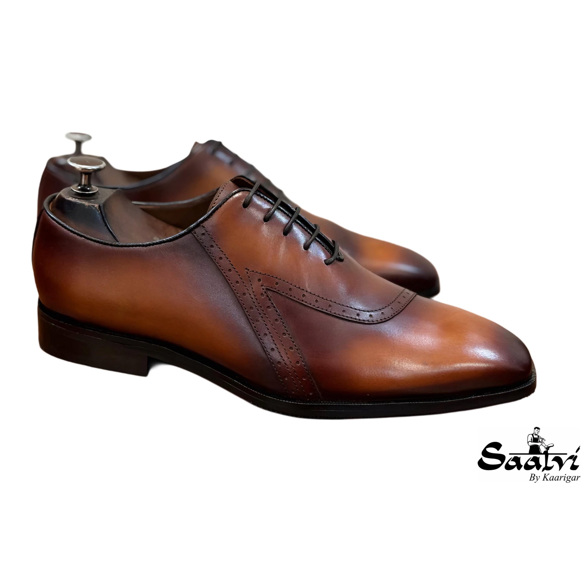 Golden Color Metal Aglets Shoelace Tips, which gives a Luxury and Fashionable look Brogue features and perforation on Toe