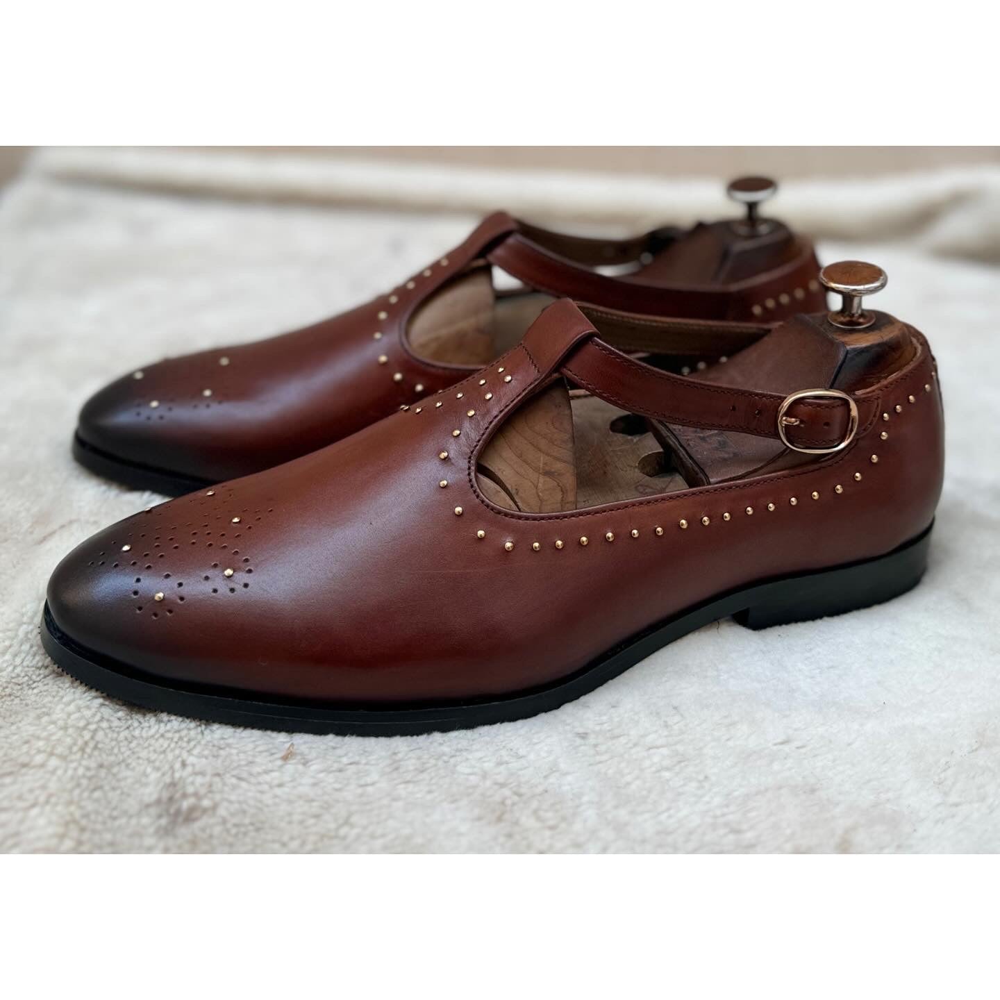 Golden Color Metal Aglets Shoelace Tips, which gives a Luxury and Fashionable look Brogue features and perforation on Toe