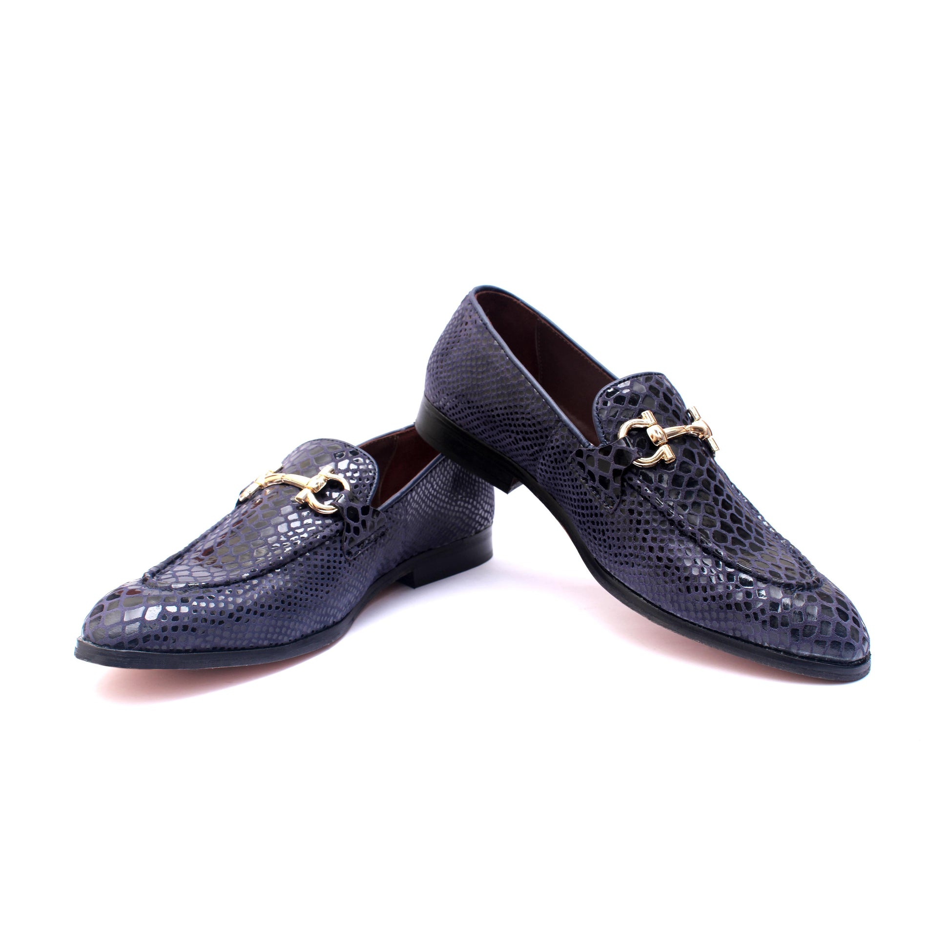 Blue Snake Print Loafers