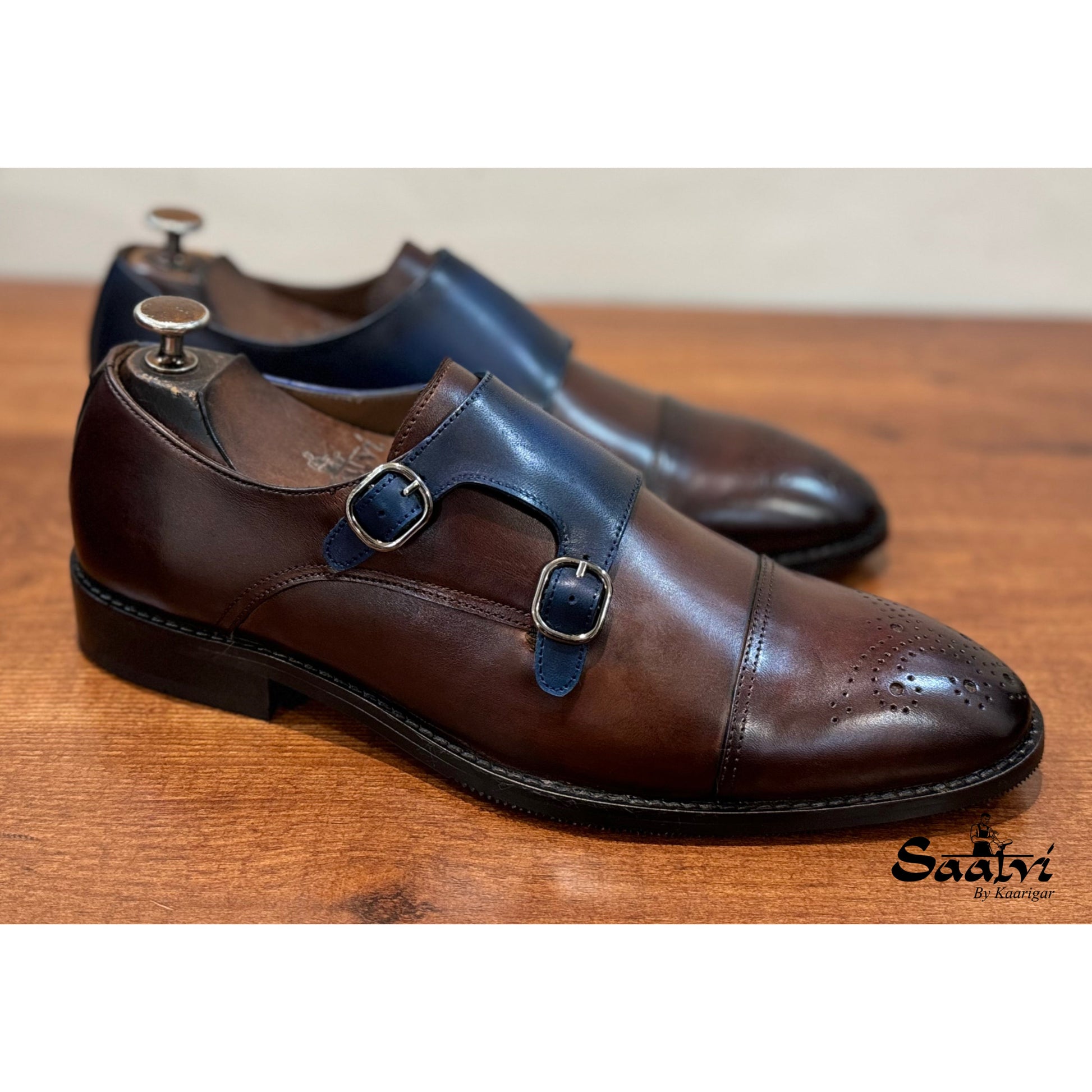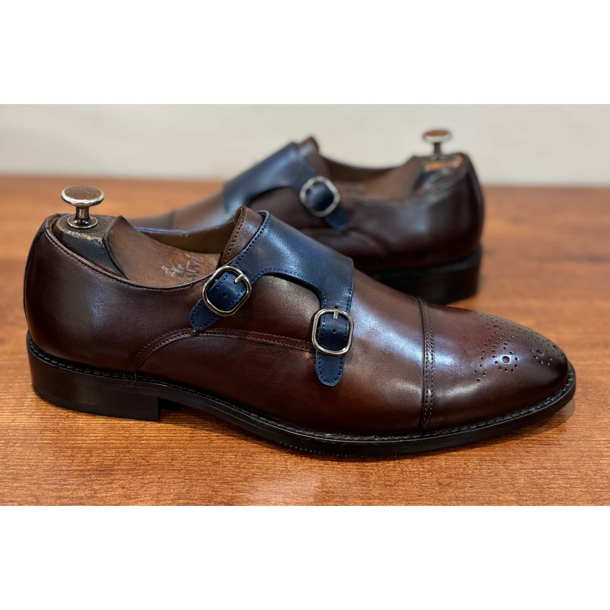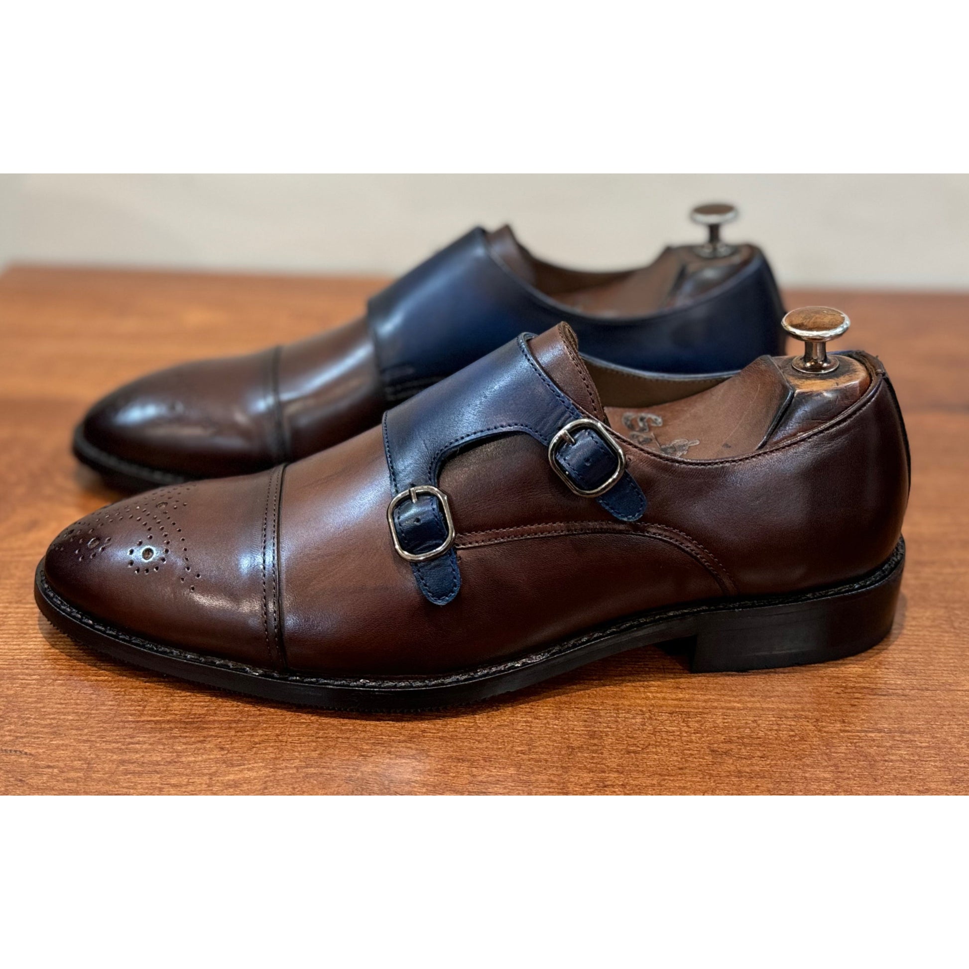 Brown Blue Double Monk Strap