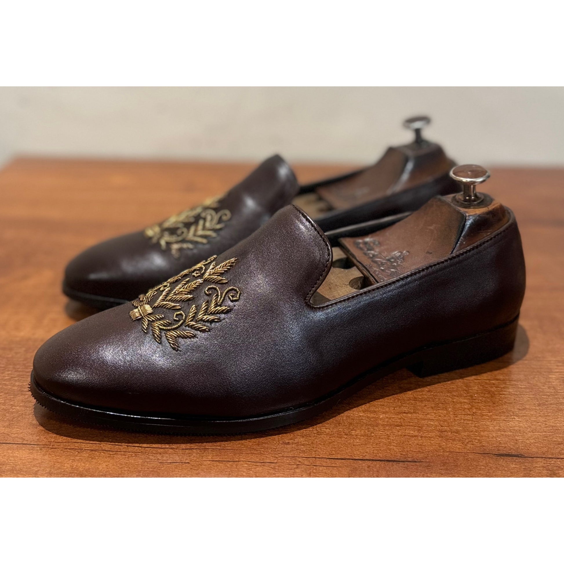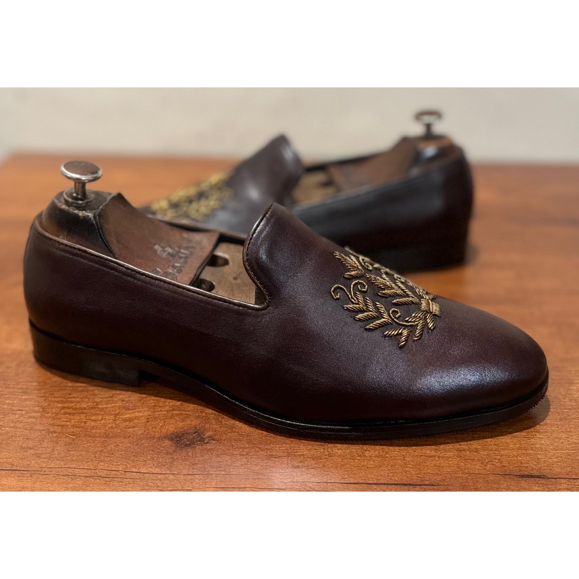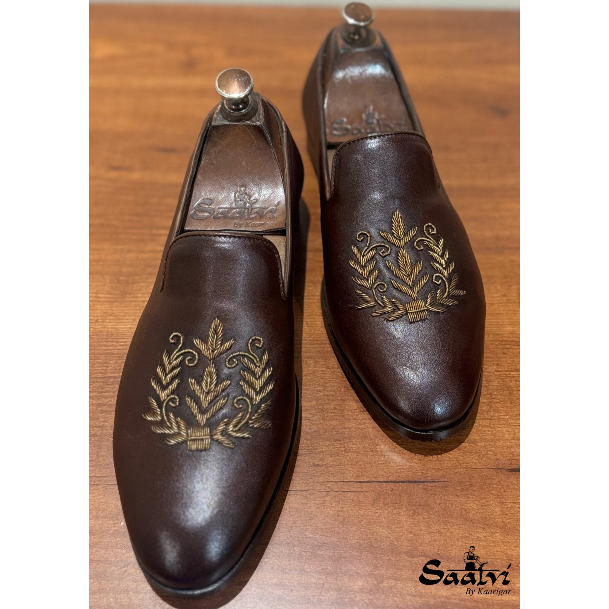 Brown Leaf Zardosi Slipons