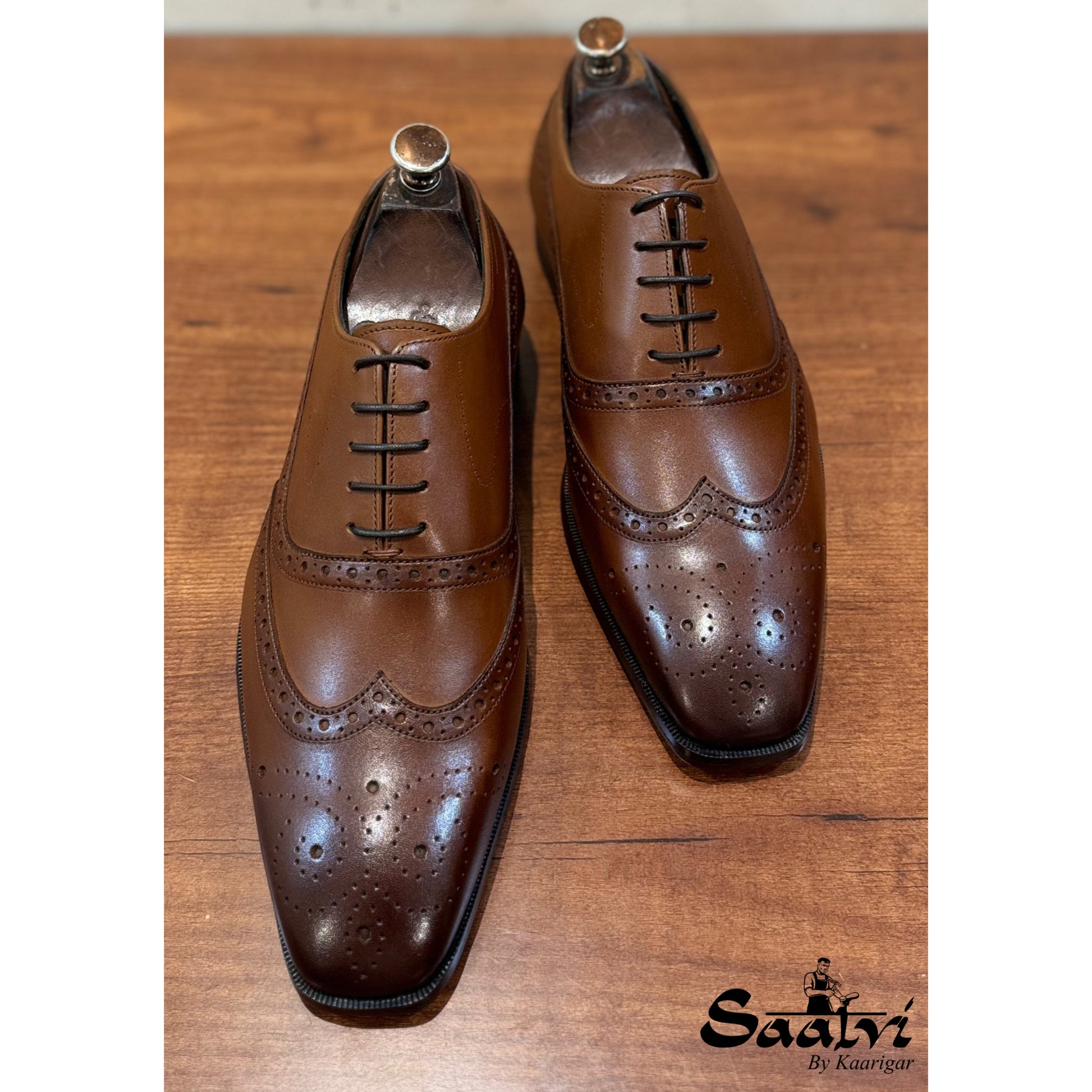 Golden Color Metal Aglets Shoelace Tips, which gives a Luxury and Fashionable look Brogue features and perforation on Toe