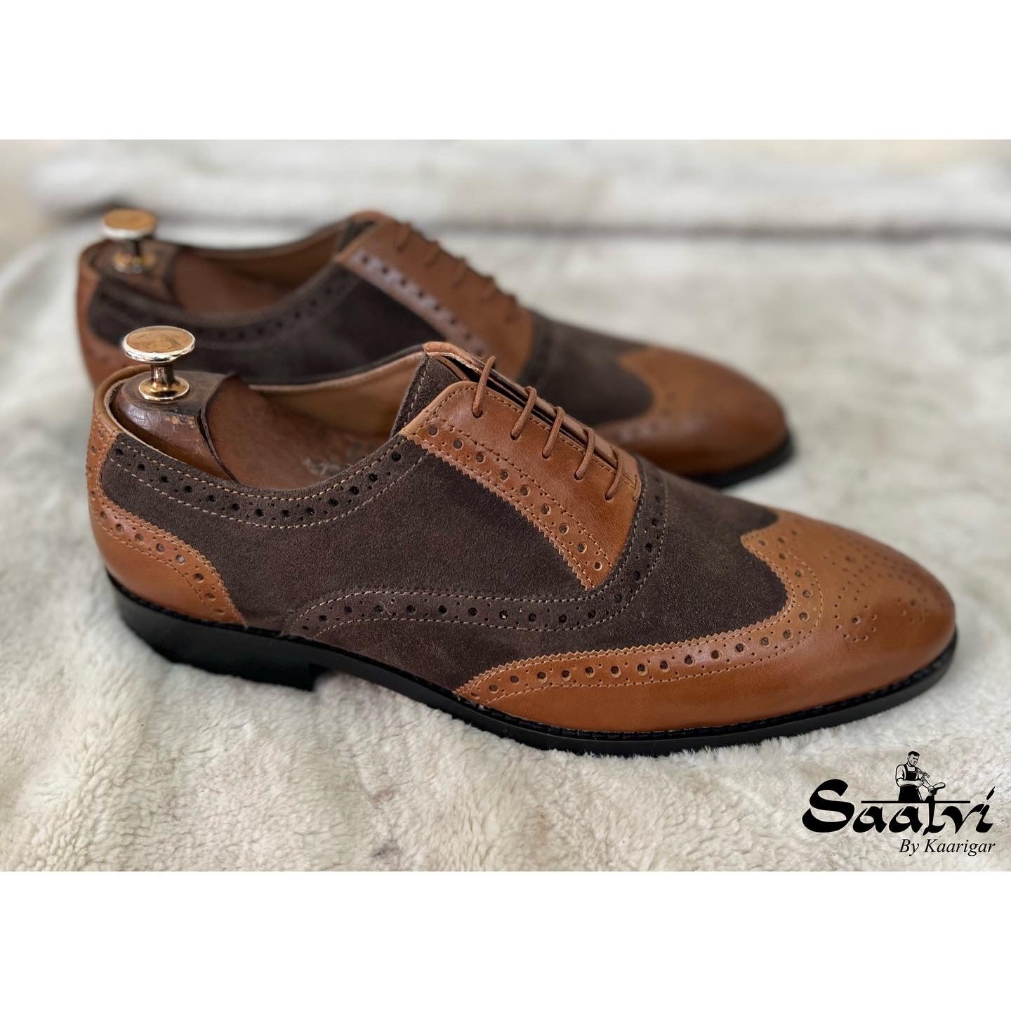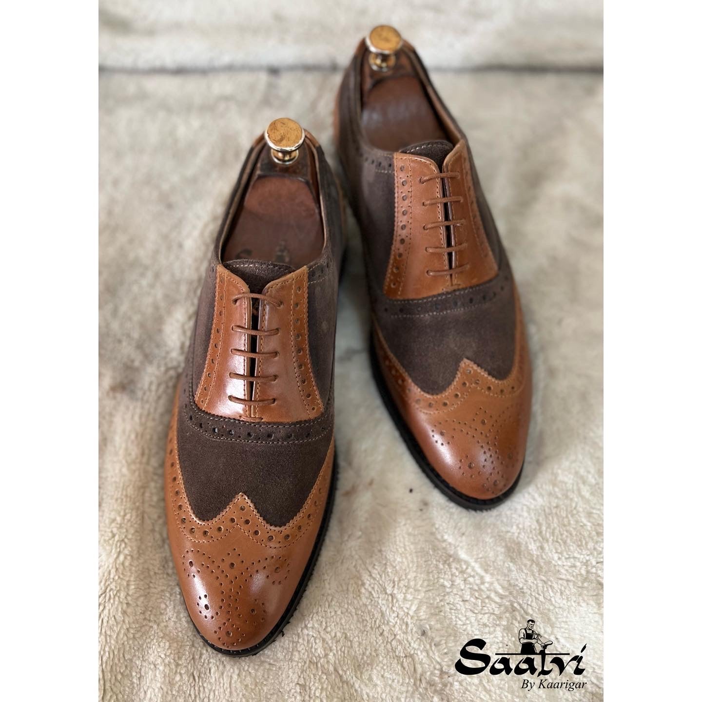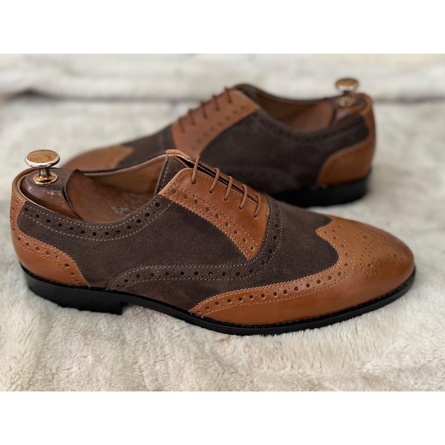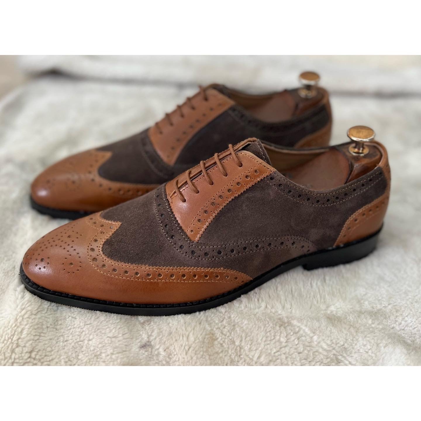 Brown Suede & Tan Leather Brouge Oxfords