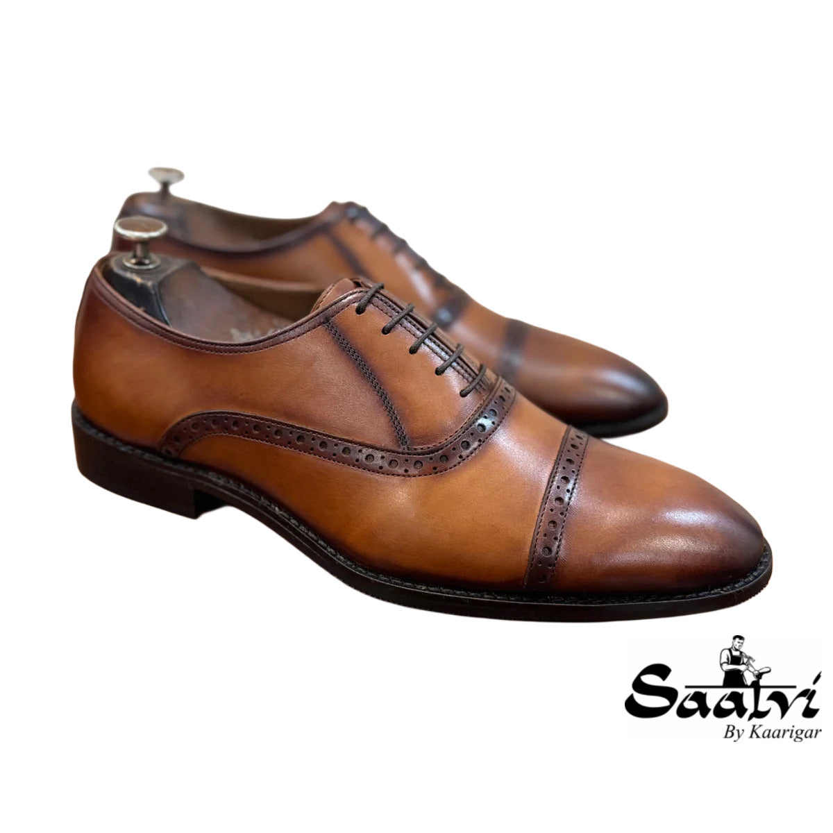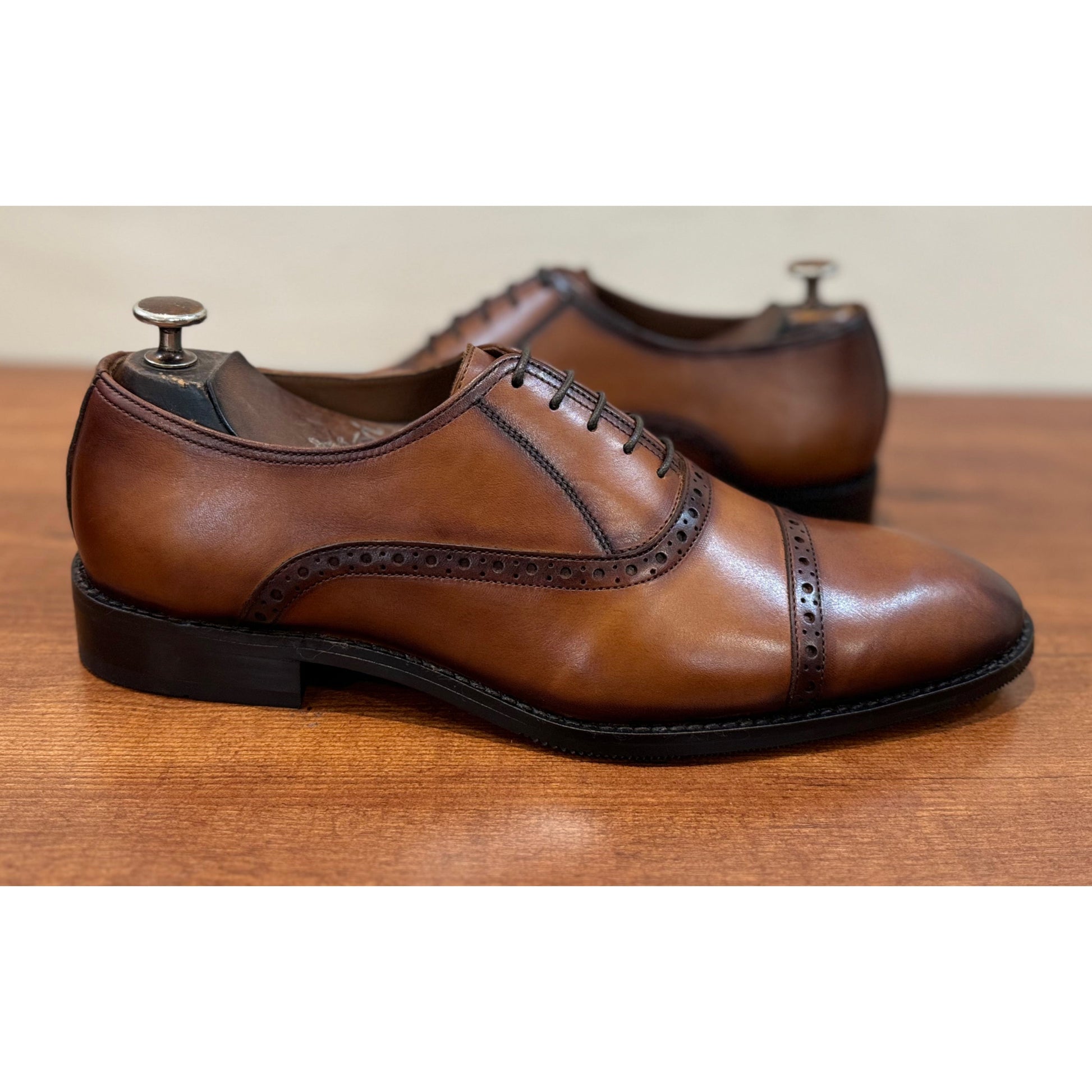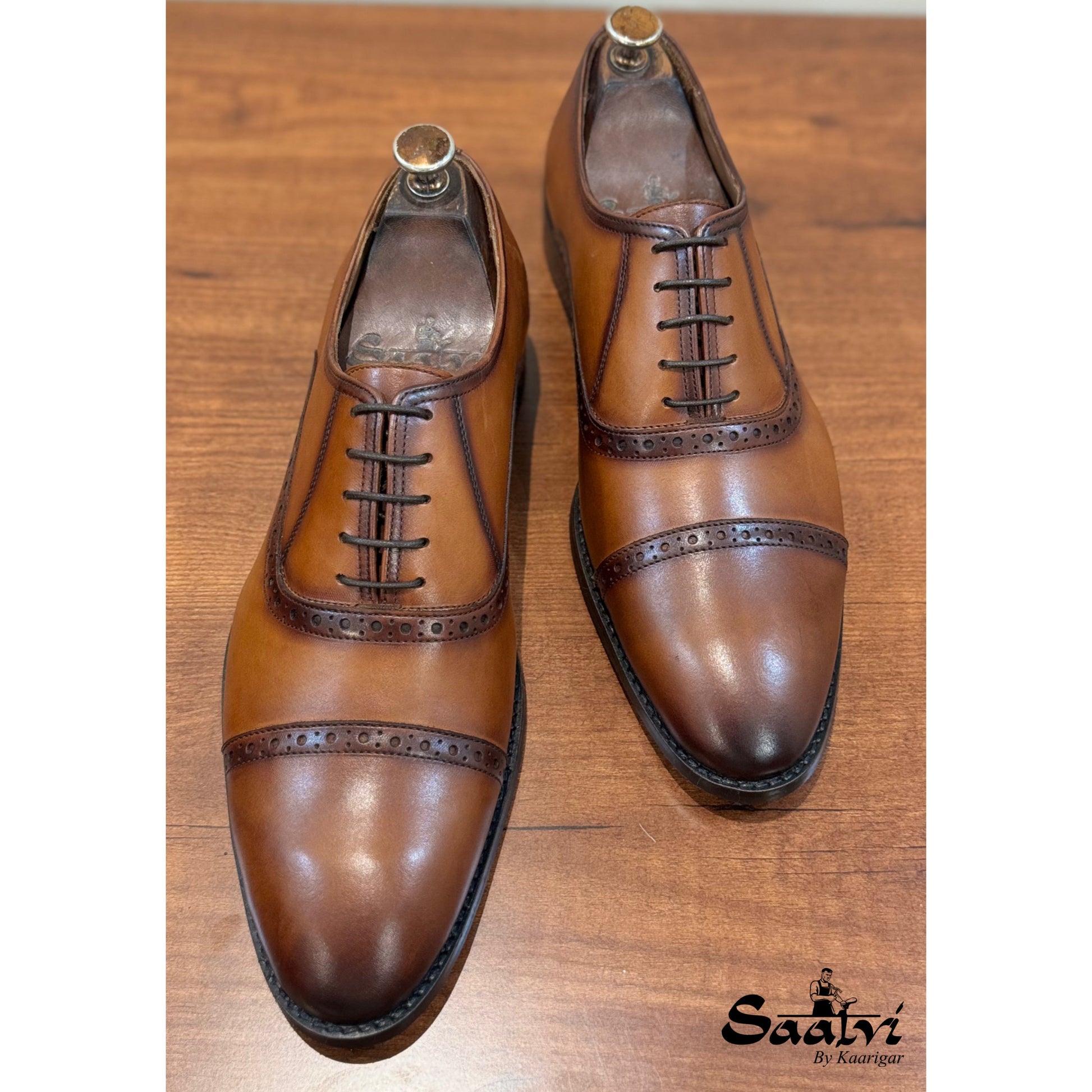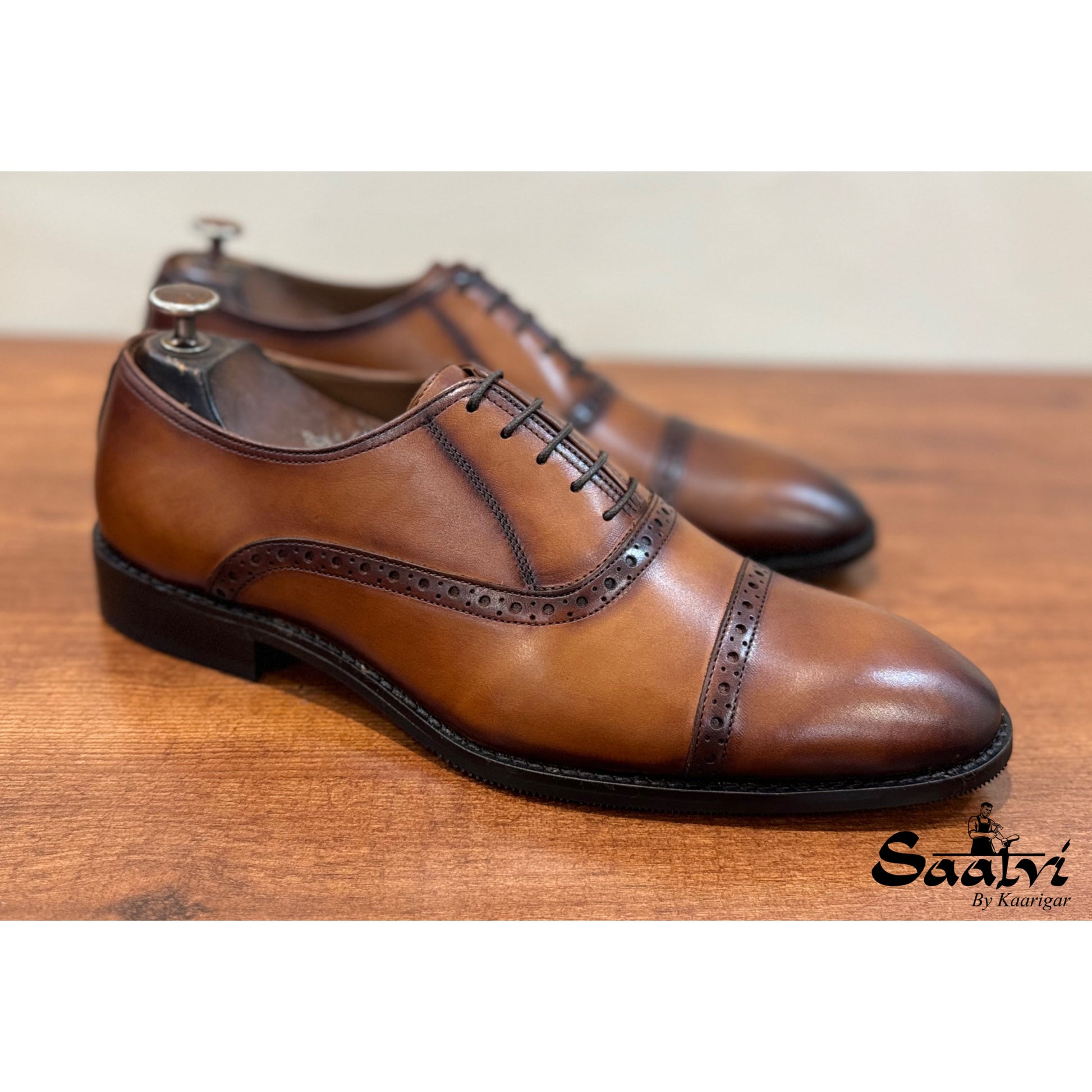 Golden Color Metal Aglets Shoelace Tips, which gives a Luxury and Fashionable look Brogue features and perforation on Toe