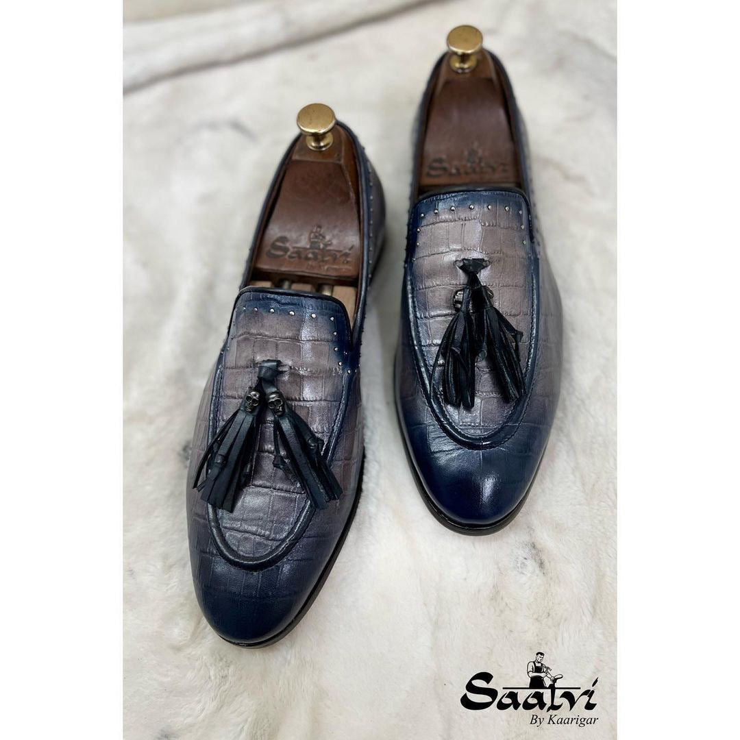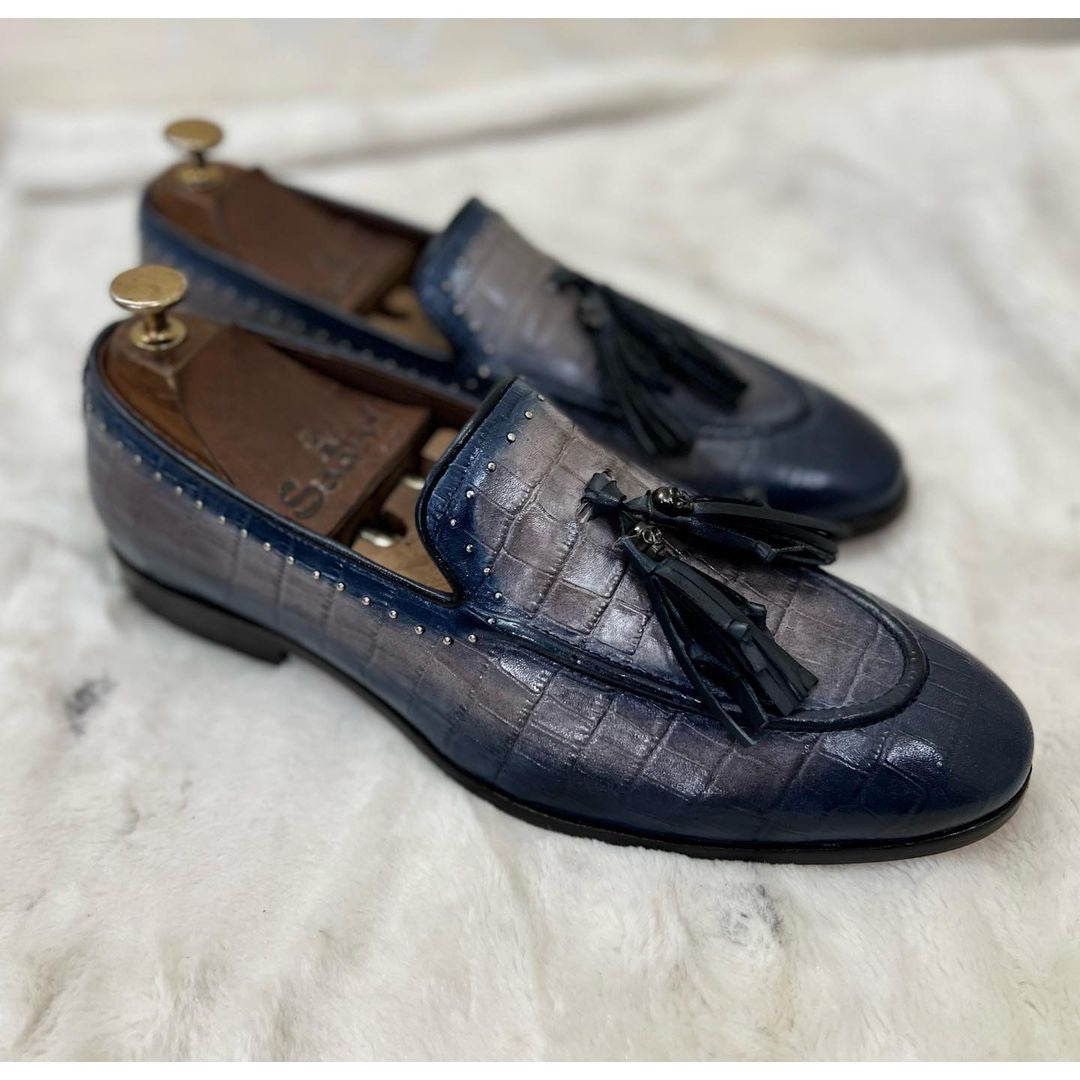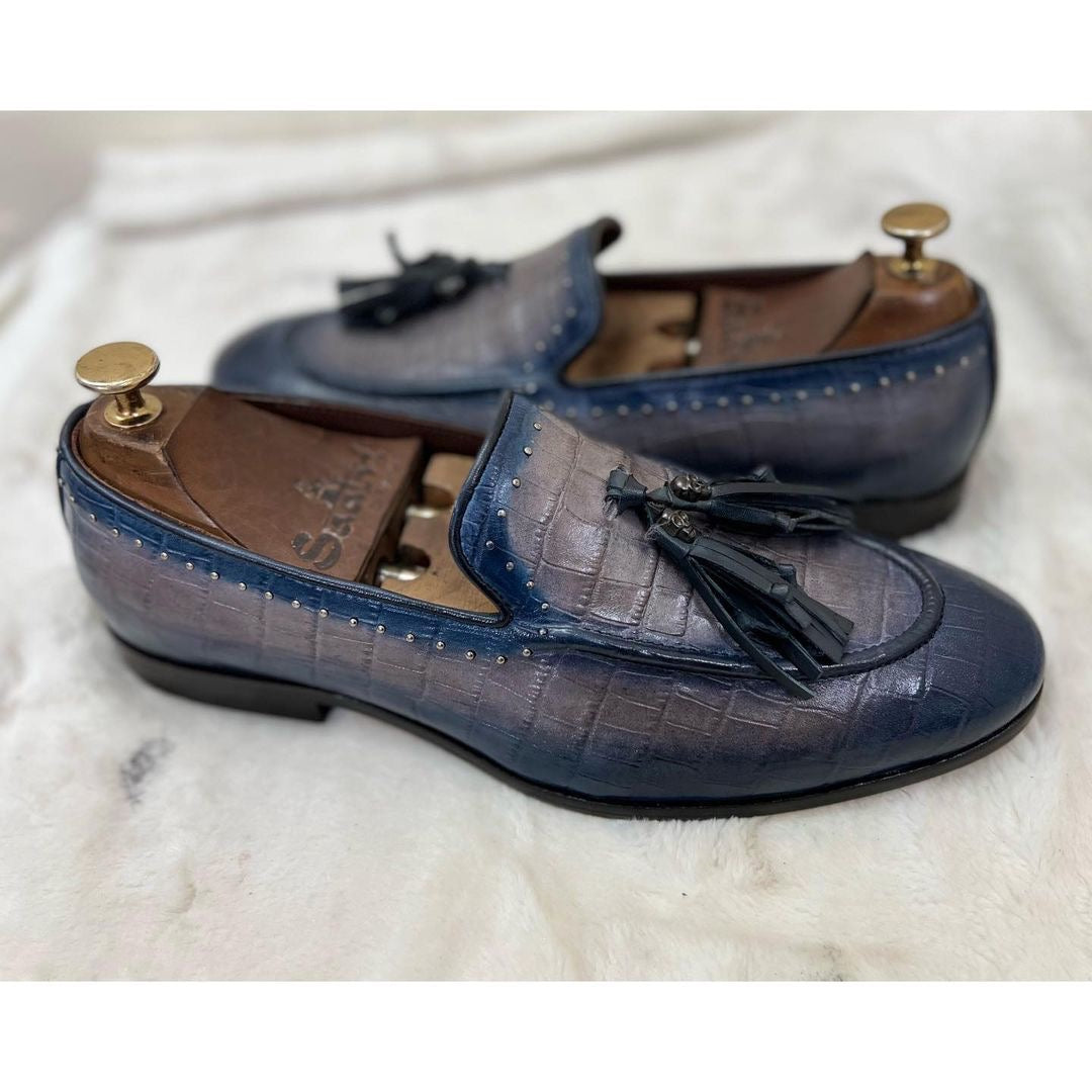 Crocodile Embossed Loafers With Tassles Hand Patina