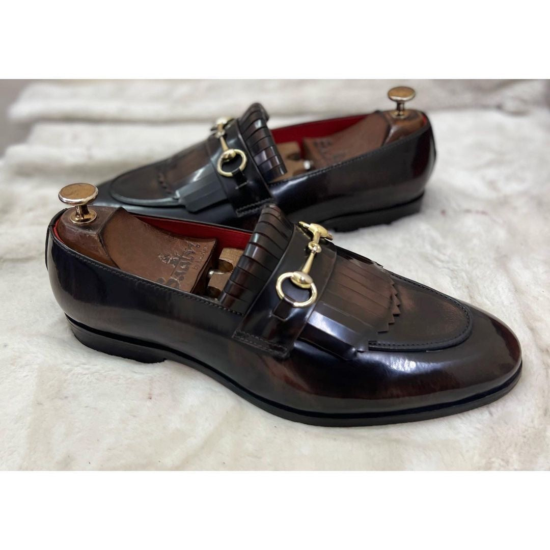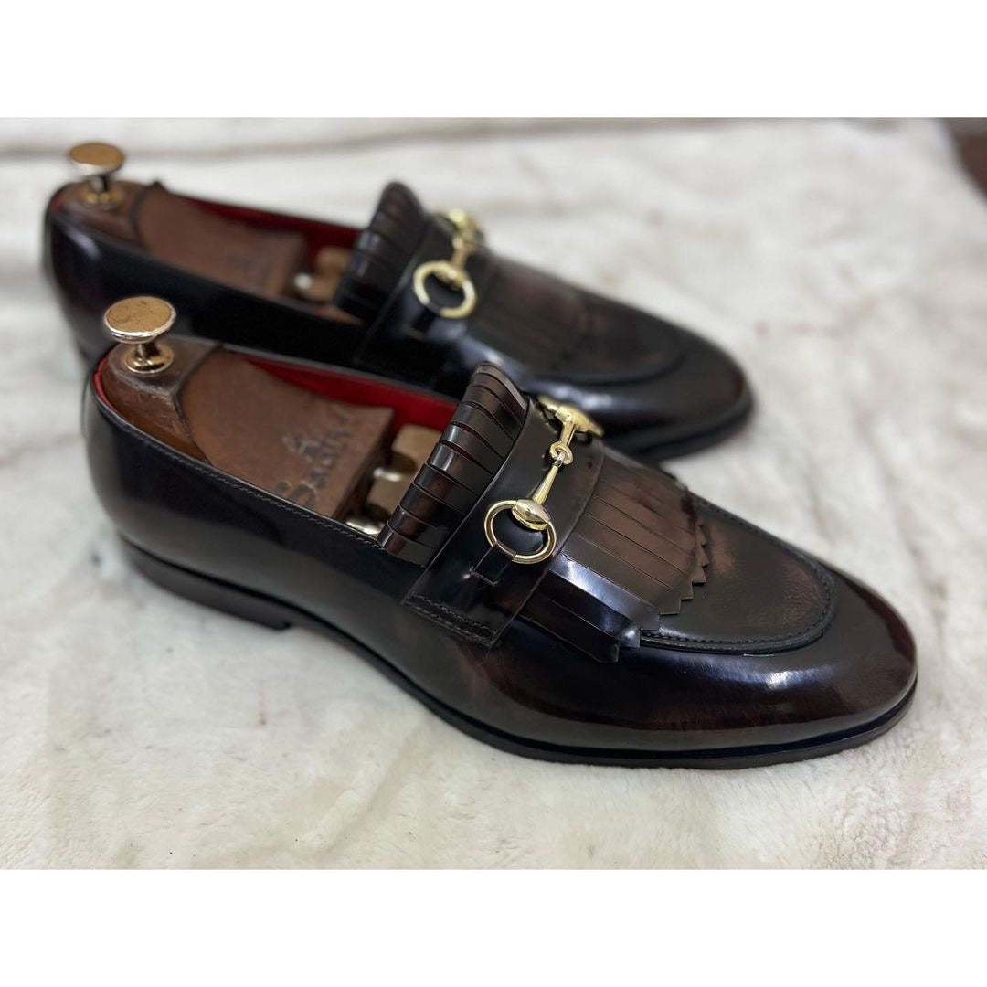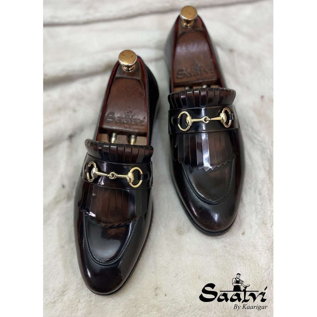 Horsebit Loafers With Fringe Brown