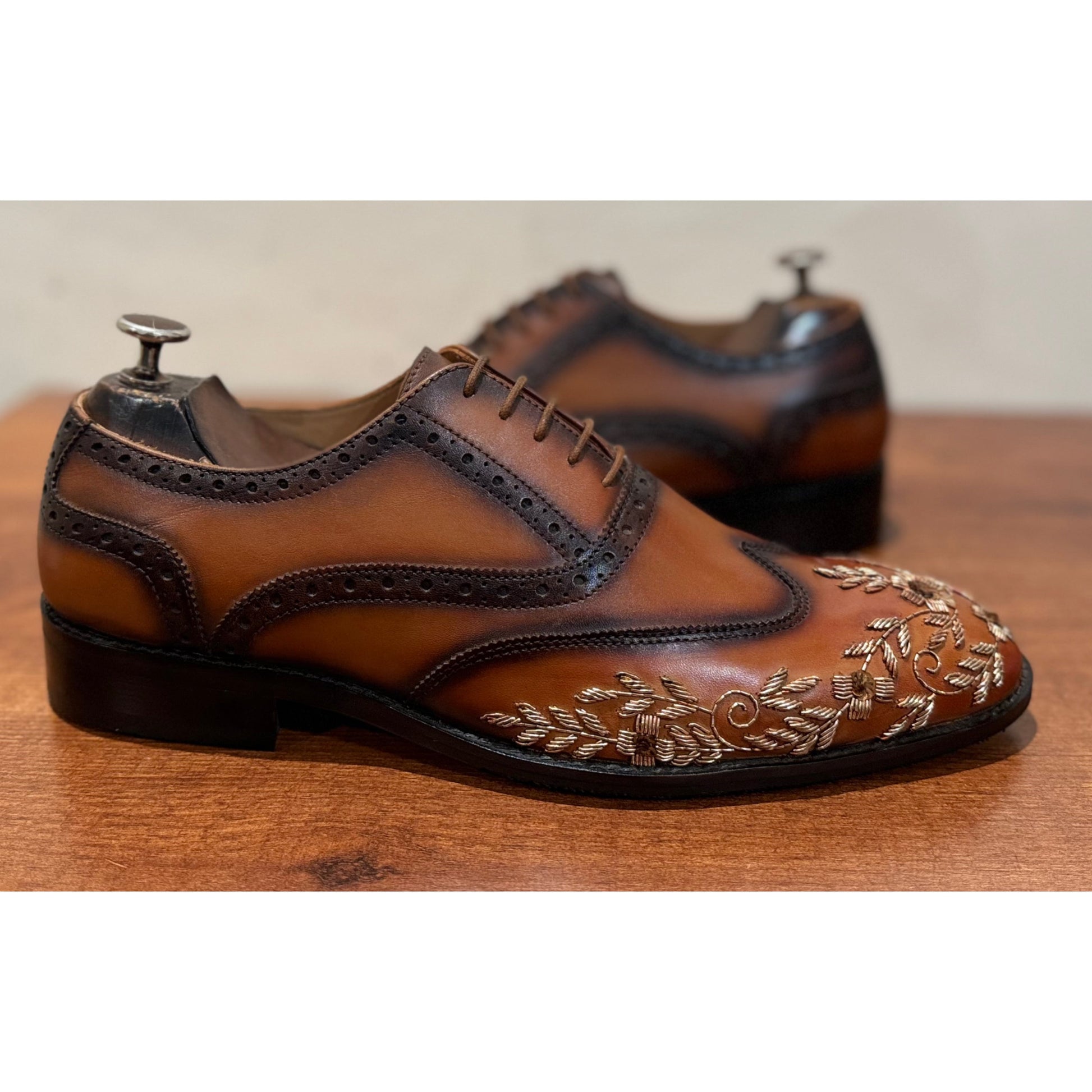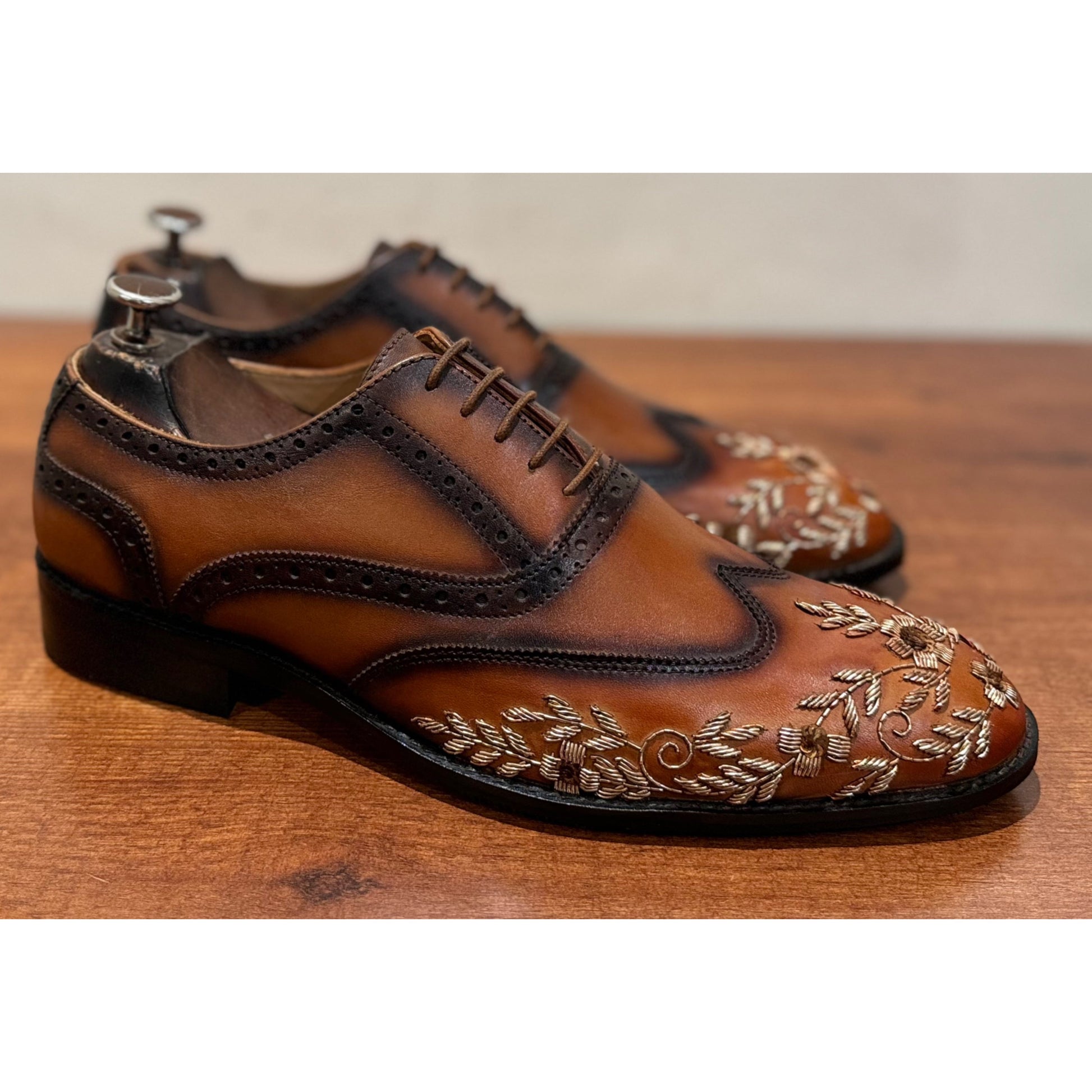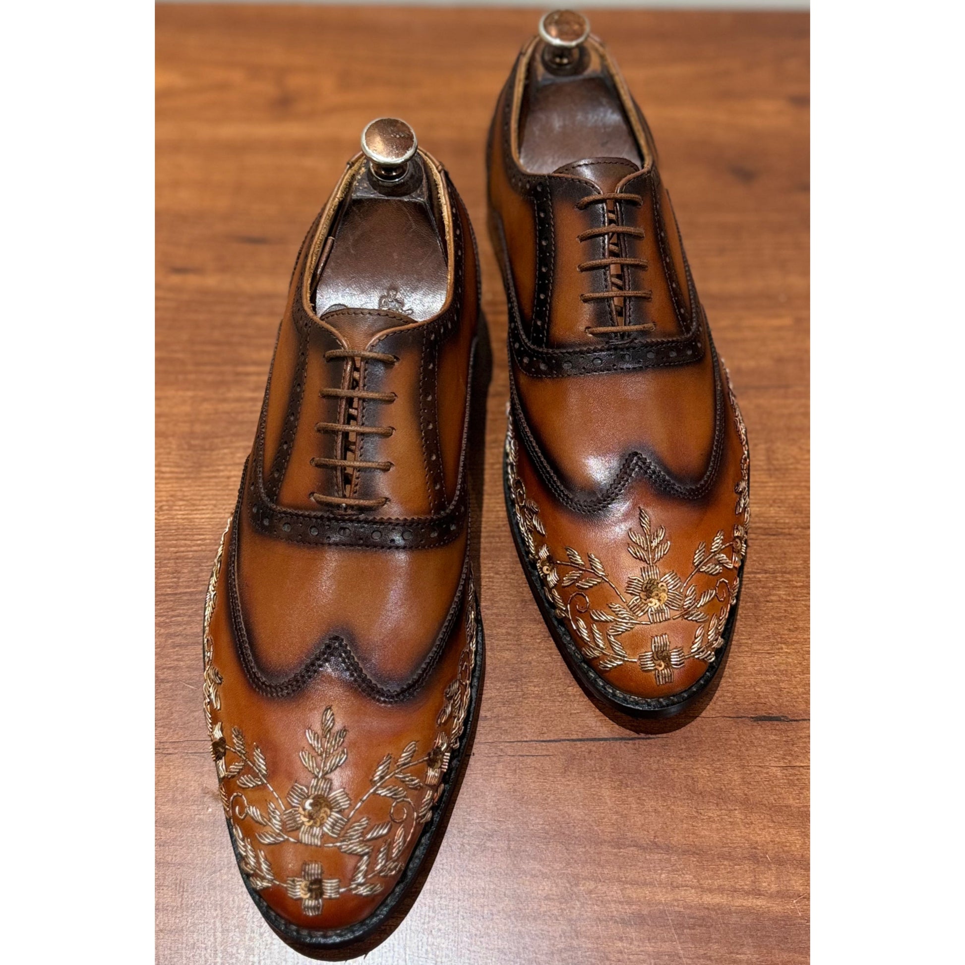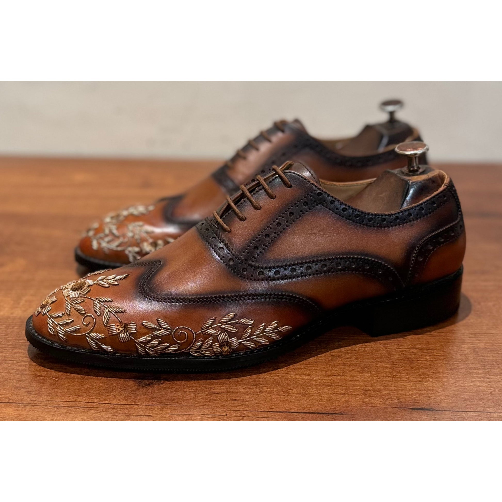 Golden Color Metal Aglets Shoelace Tips, which gives a Luxury and Fashionable look Brogue features and perforation on Toe