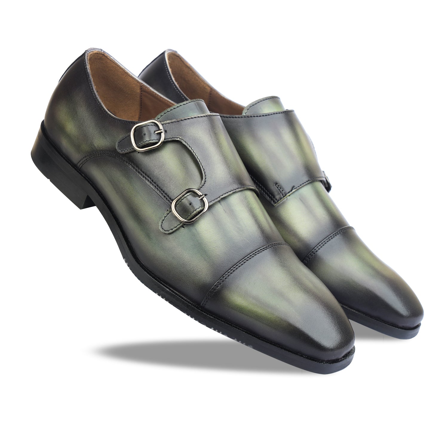 Green Hand Patina Double Monk Strap