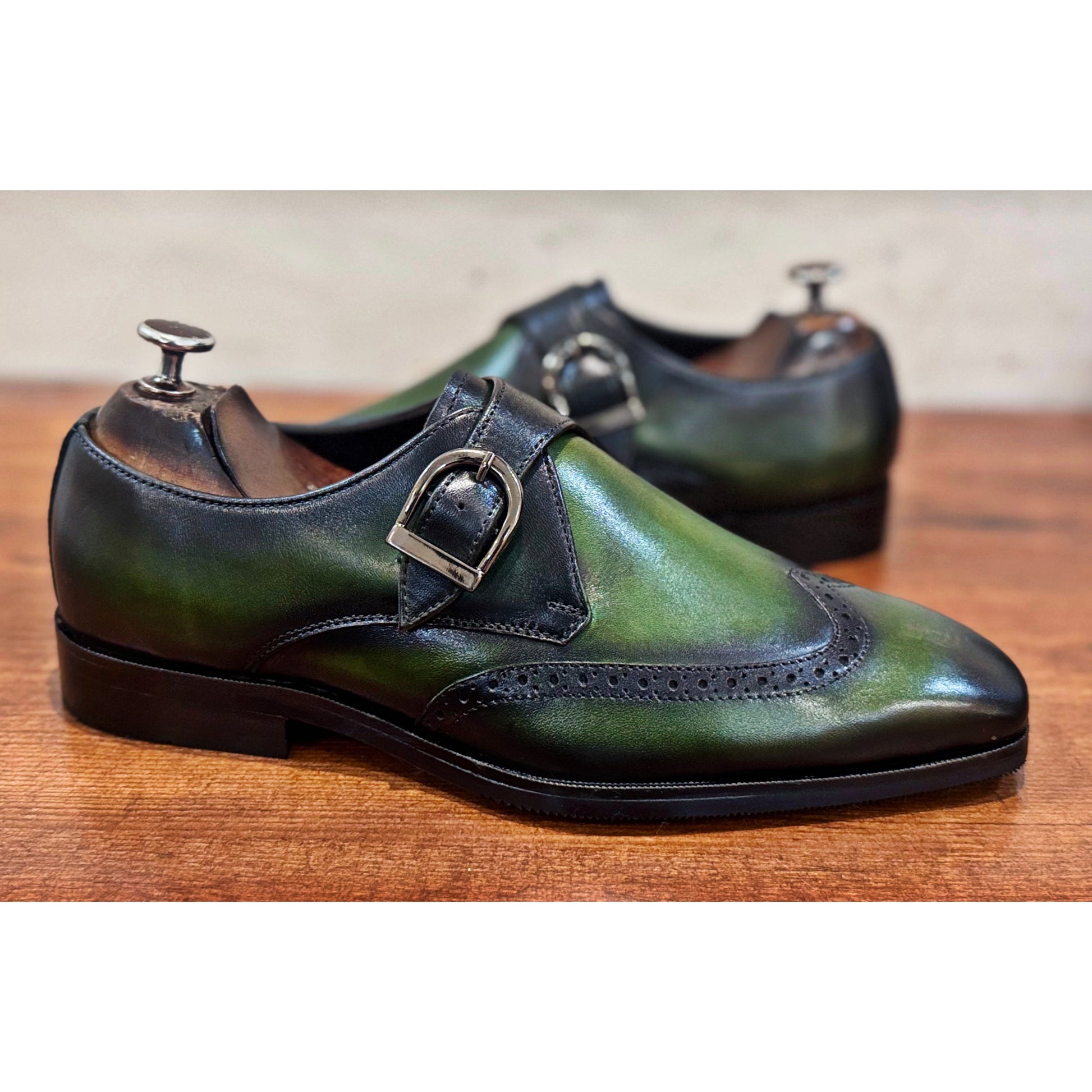 Green Single Monk Strap Hand Patina