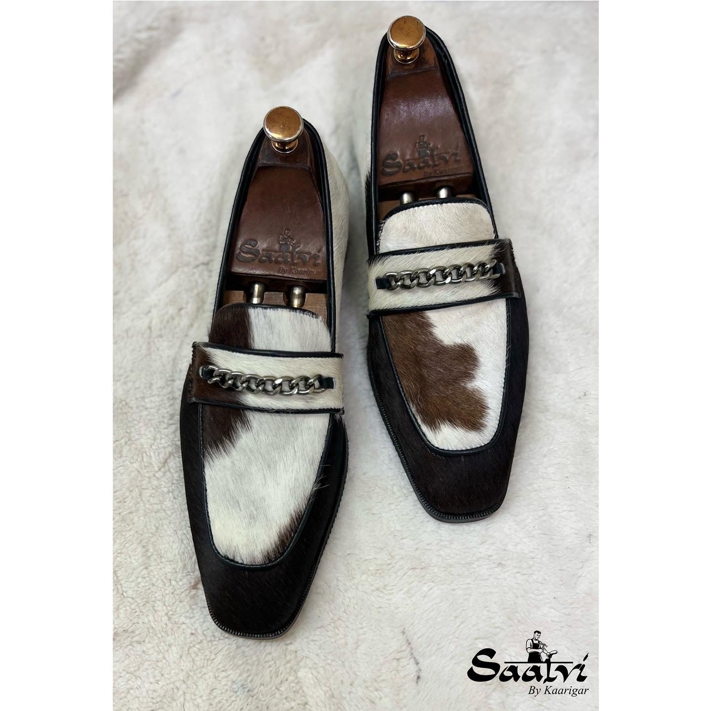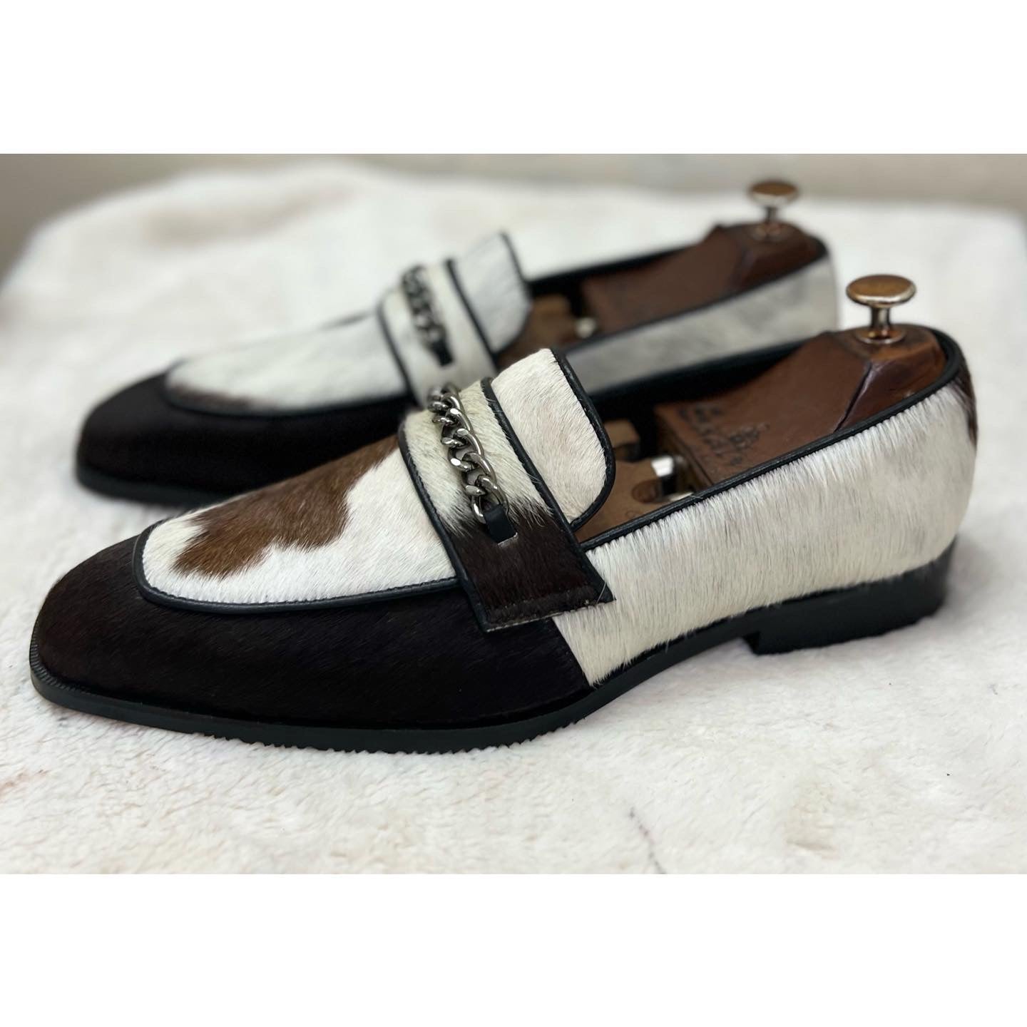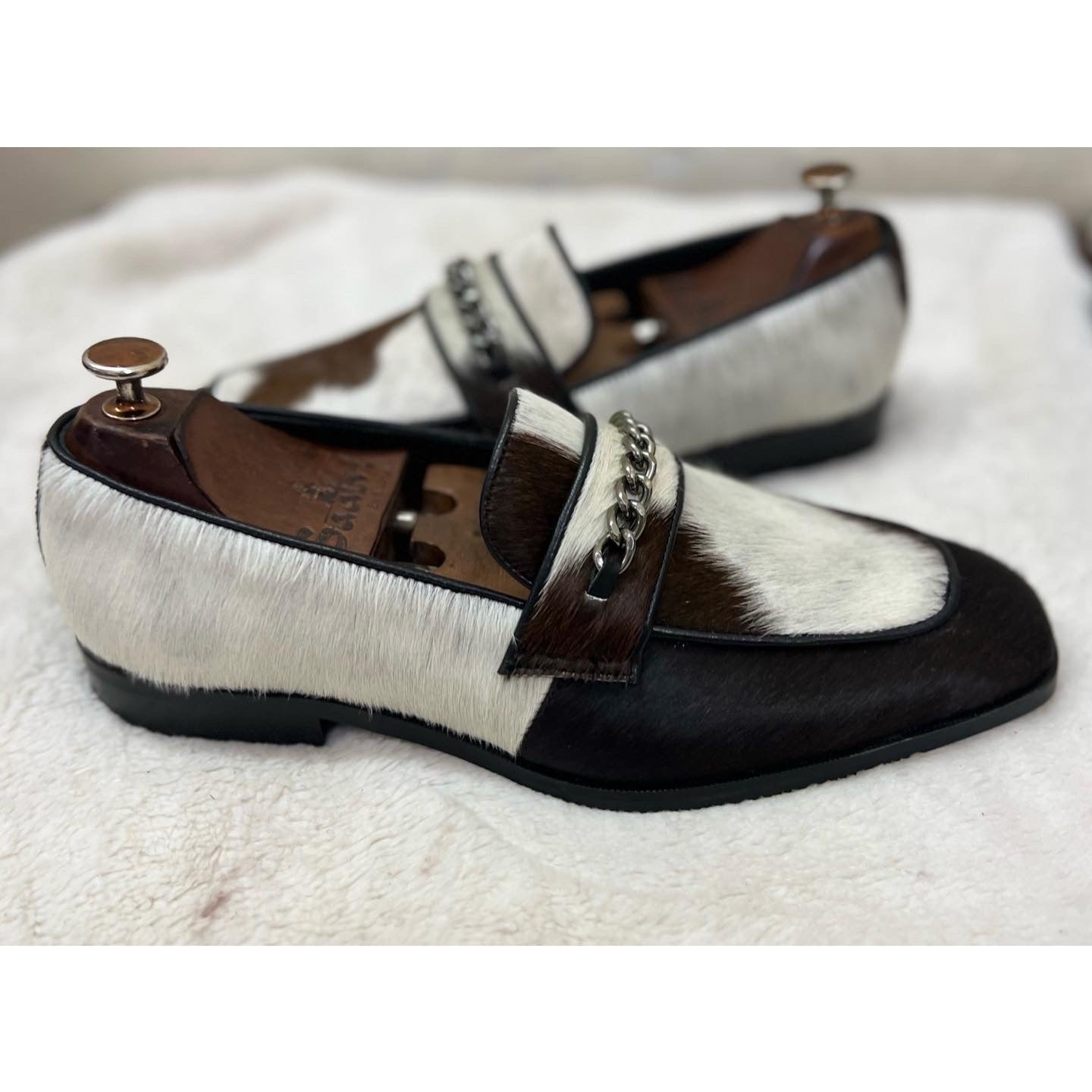 Hairon Leather Loafers With Black Metal Chain