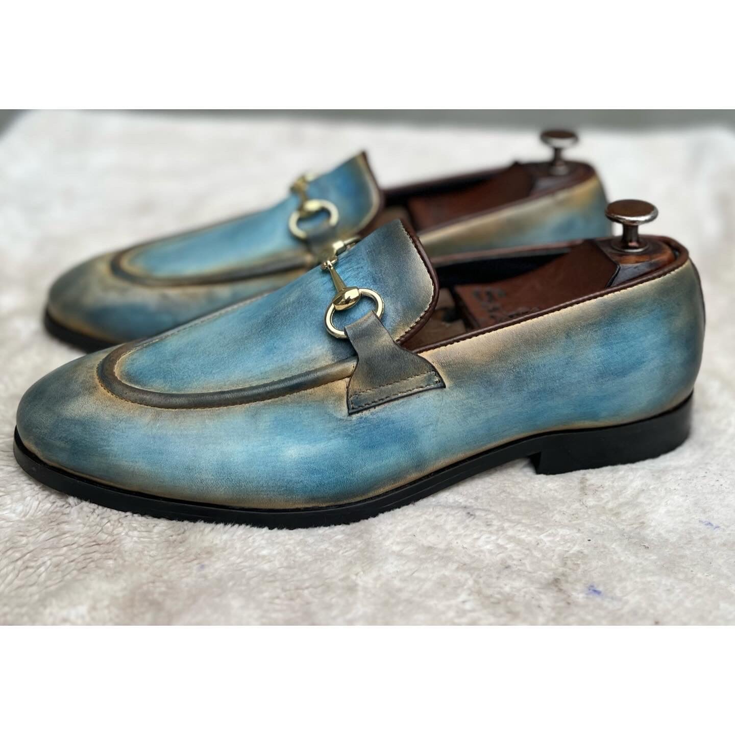 Horsebit Loafers Blue Hand Patina