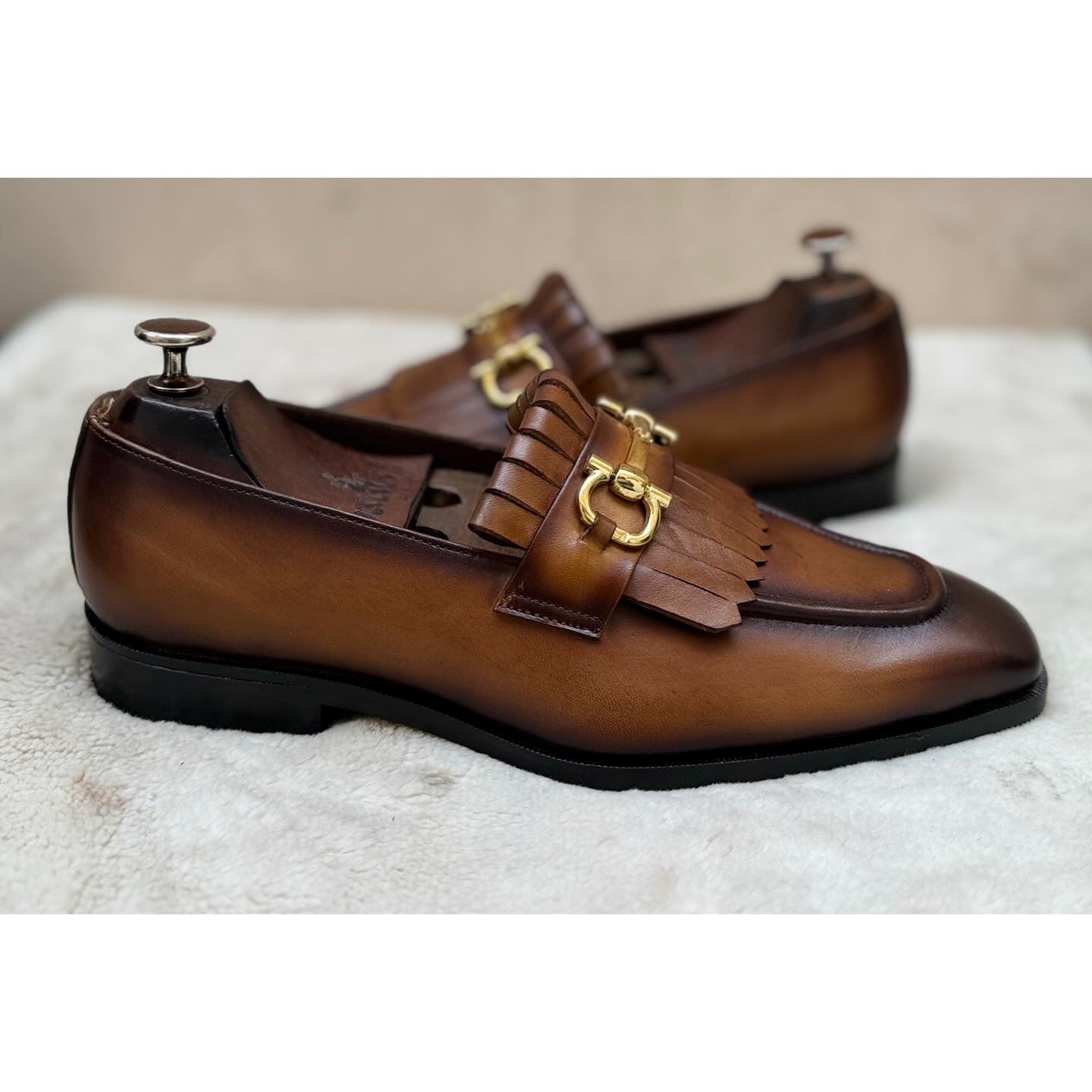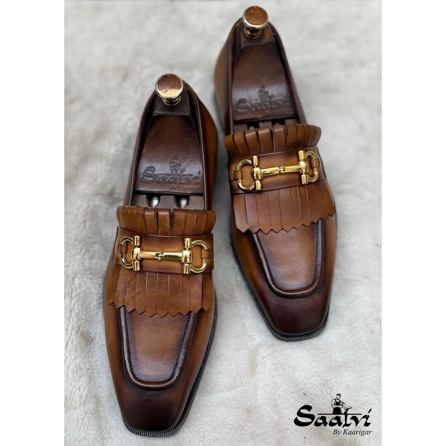 Golden Color Metal Aglets Shoelace Tips, which gives a Luxury and Fashionable look Brogue features and perforation on Toe
