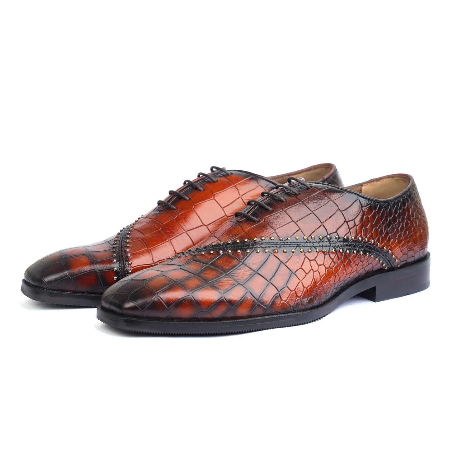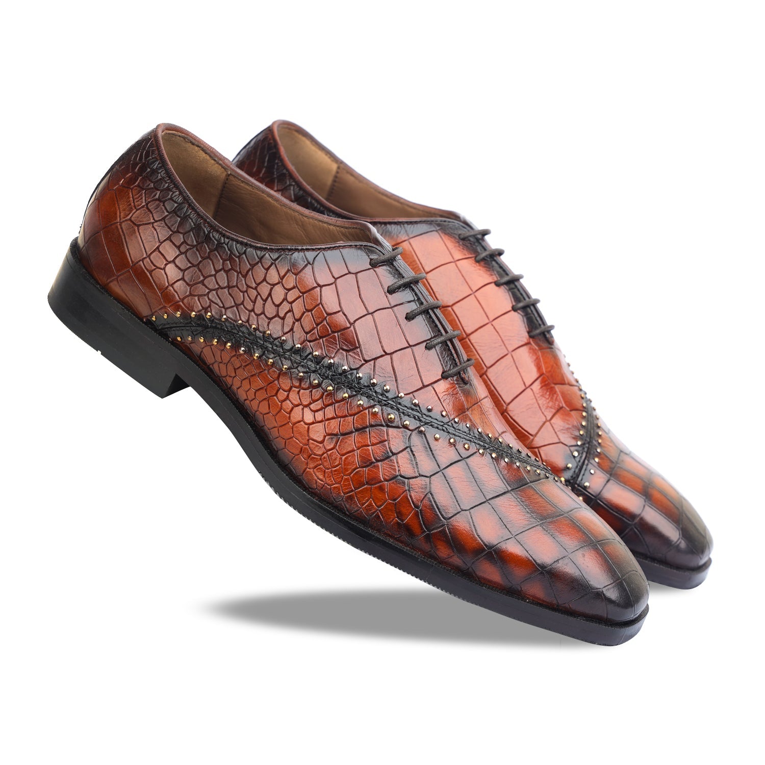 Golden Color Metal Aglets Shoelace Tips, which gives a Luxury and Fashionable look Brogue features and perforation on Toe