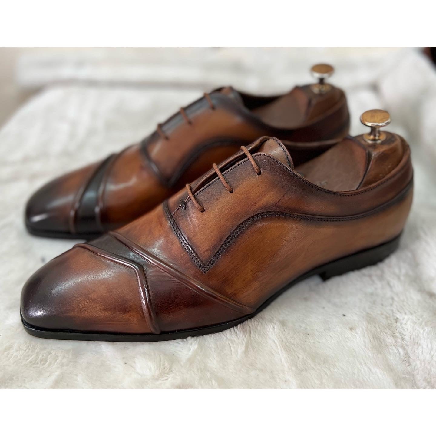 Golden Color Metal Aglets Shoelace Tips, which gives a Luxury and Fashionable look Brogue features and perforation on Toe