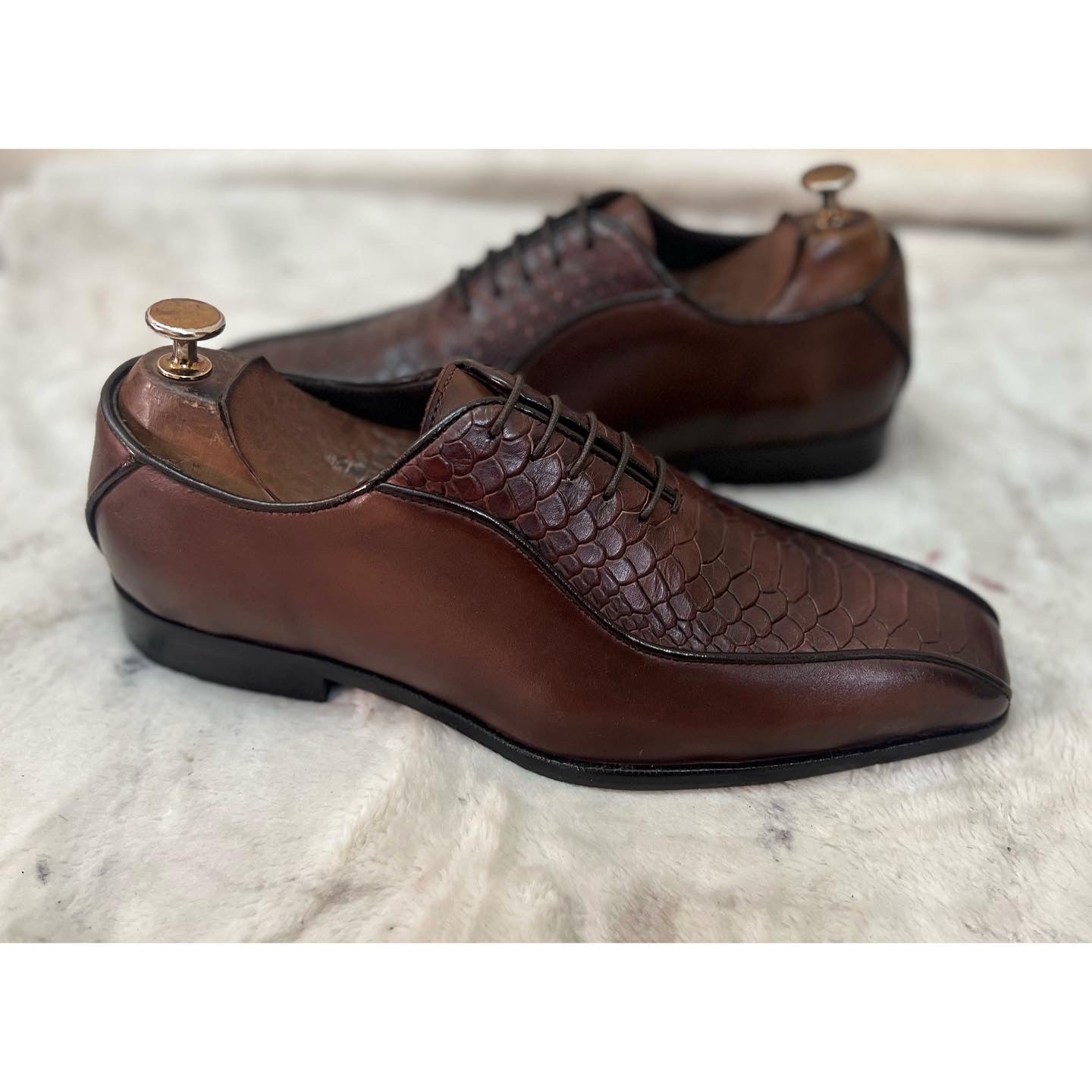 Pyhton Embossed Oxfords Brown Laceups