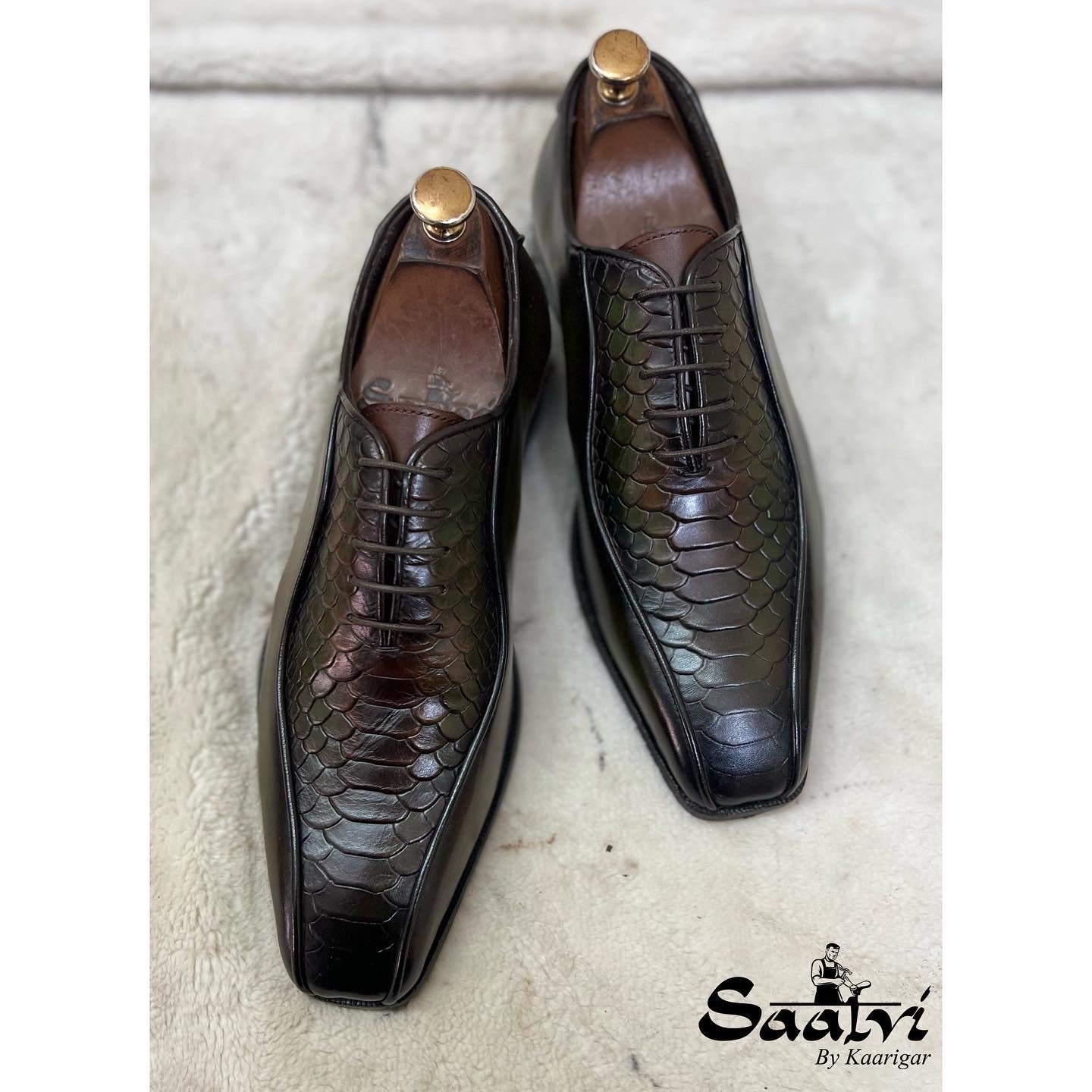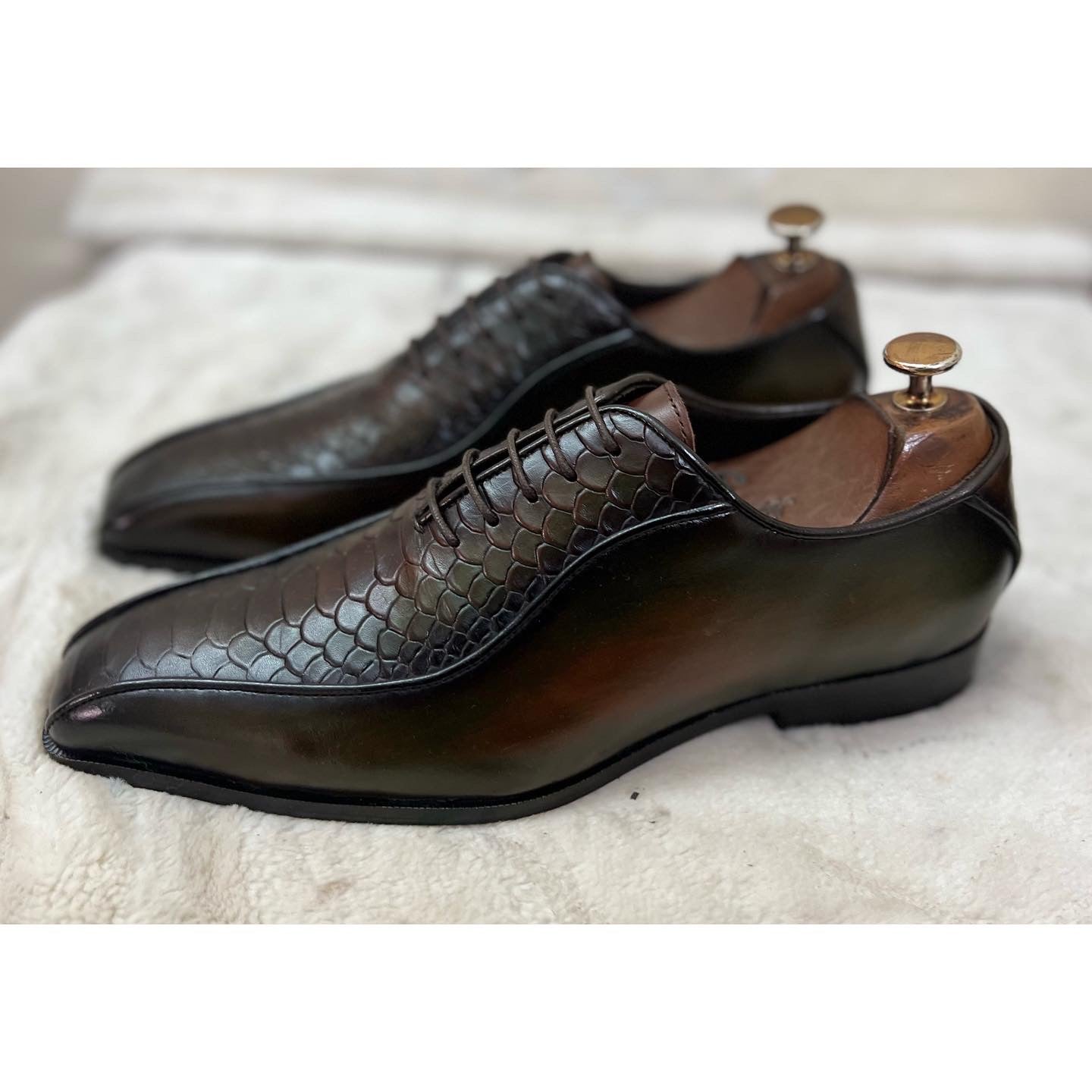 Python Embossed Oxfords Green Hand Patina