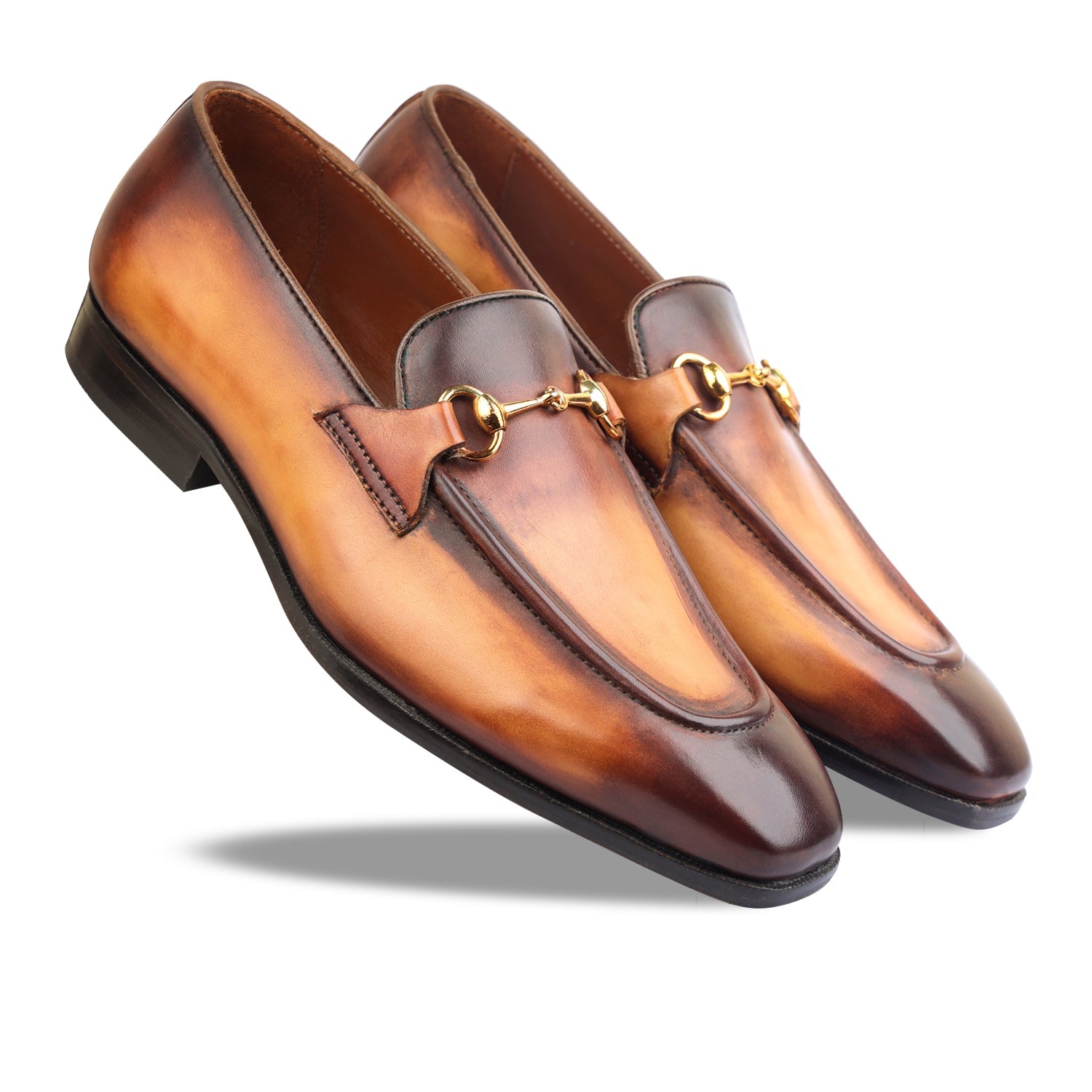Saalvi Bespoke Custom Men's Tan Patina Loafers