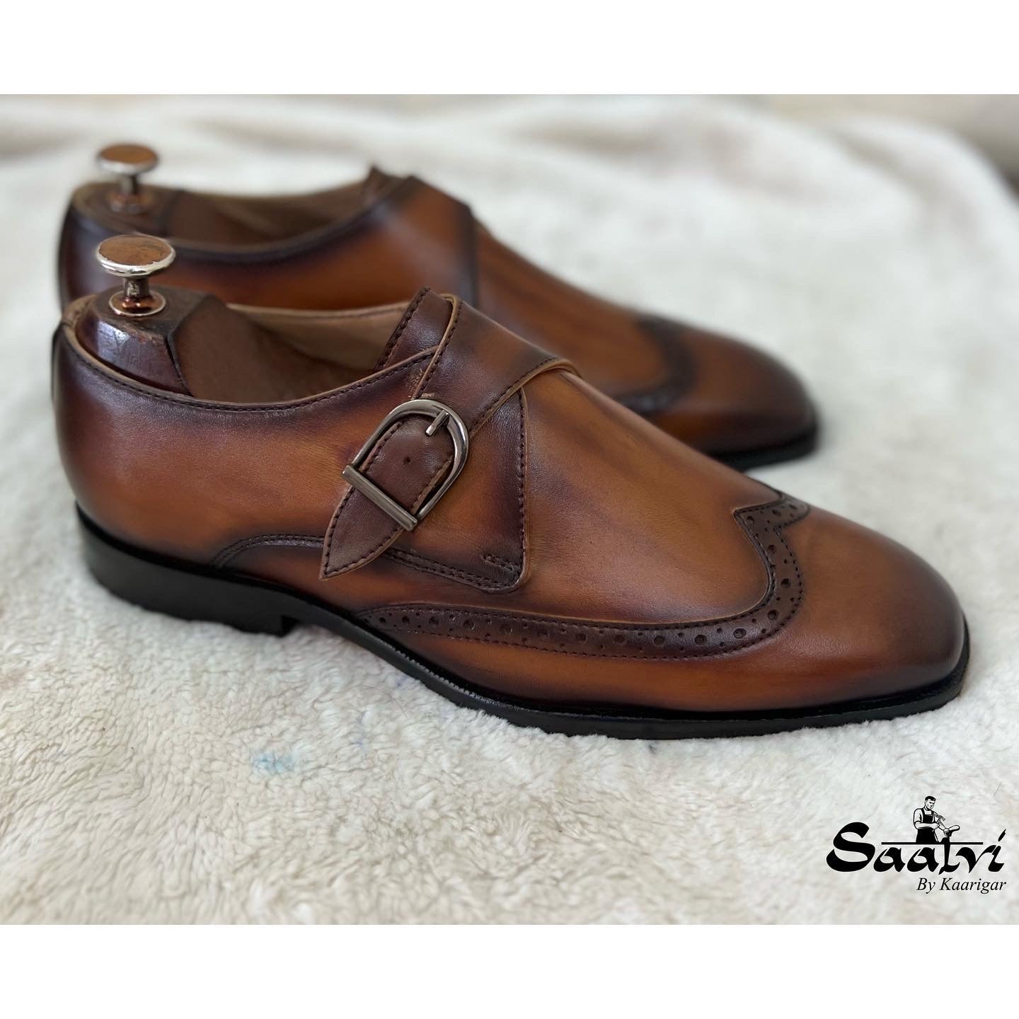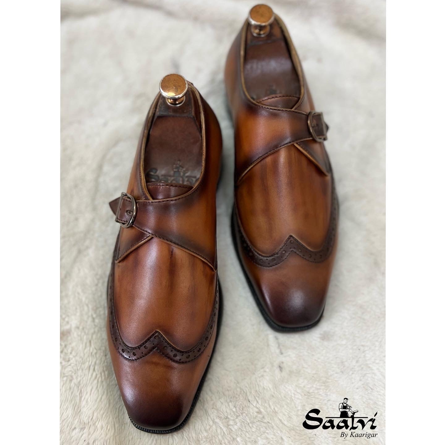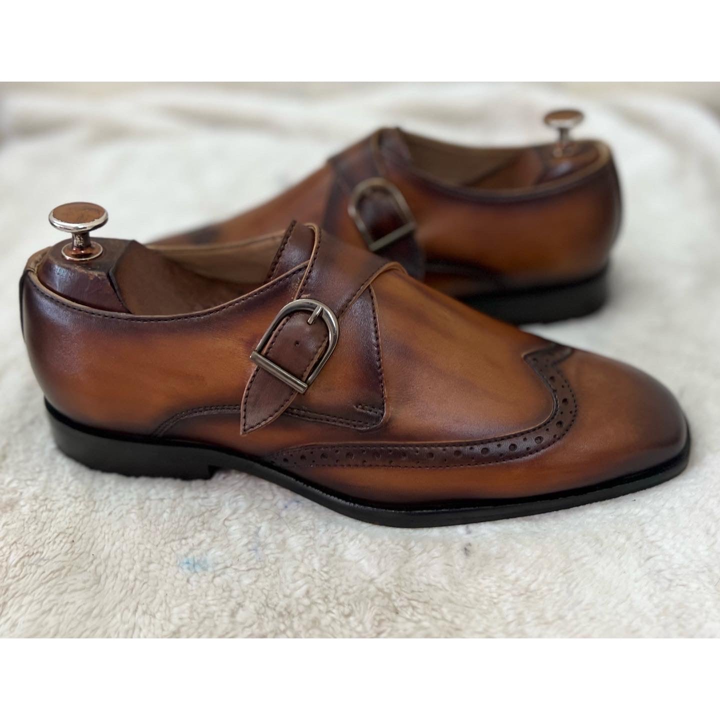Single Monk Strap Tan Hand Patina