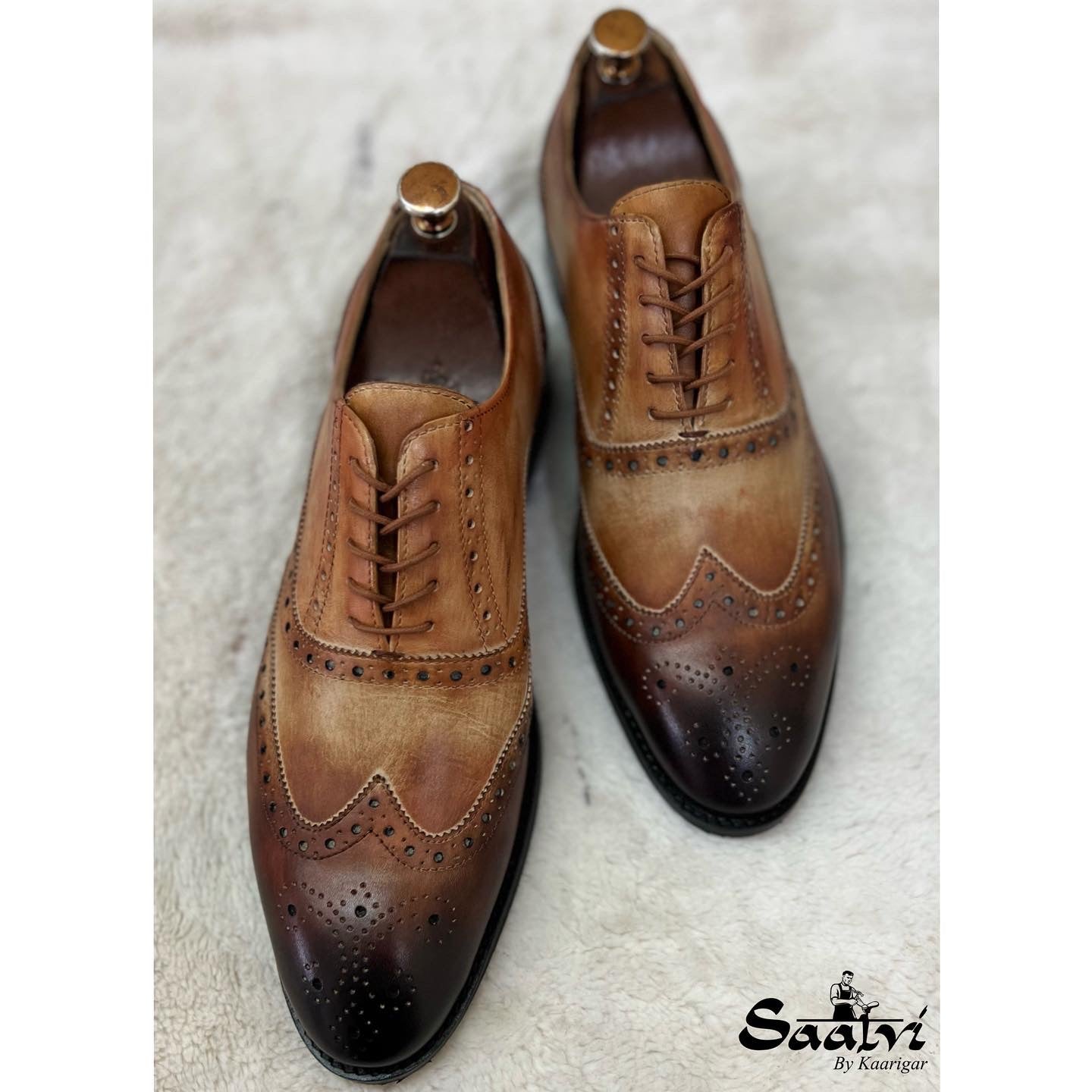 Golden Color Metal Aglets Shoelace Tips, which gives a Luxury and Fashionable look Brogue features and perforation on Toe