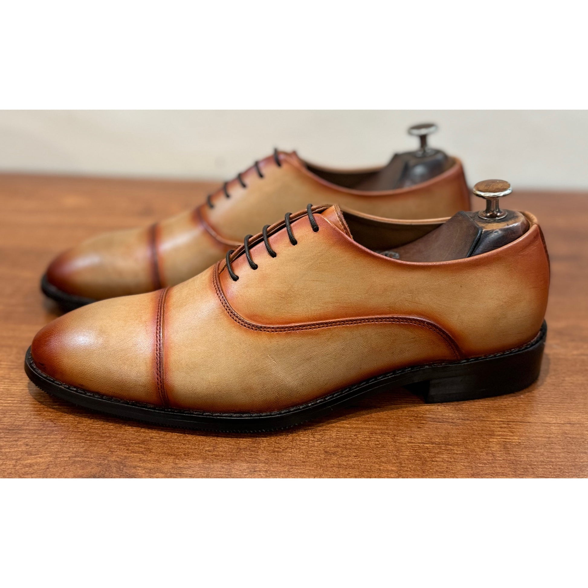 Tan Mirror Captoe Oxfords