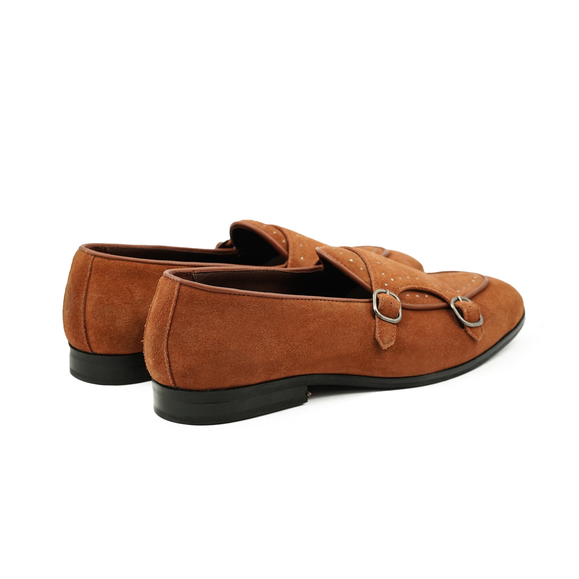 Handcrafted Classic Belgian Loafers With Monkstrap Made Using Finest Suede Leather With Stud Detailing.