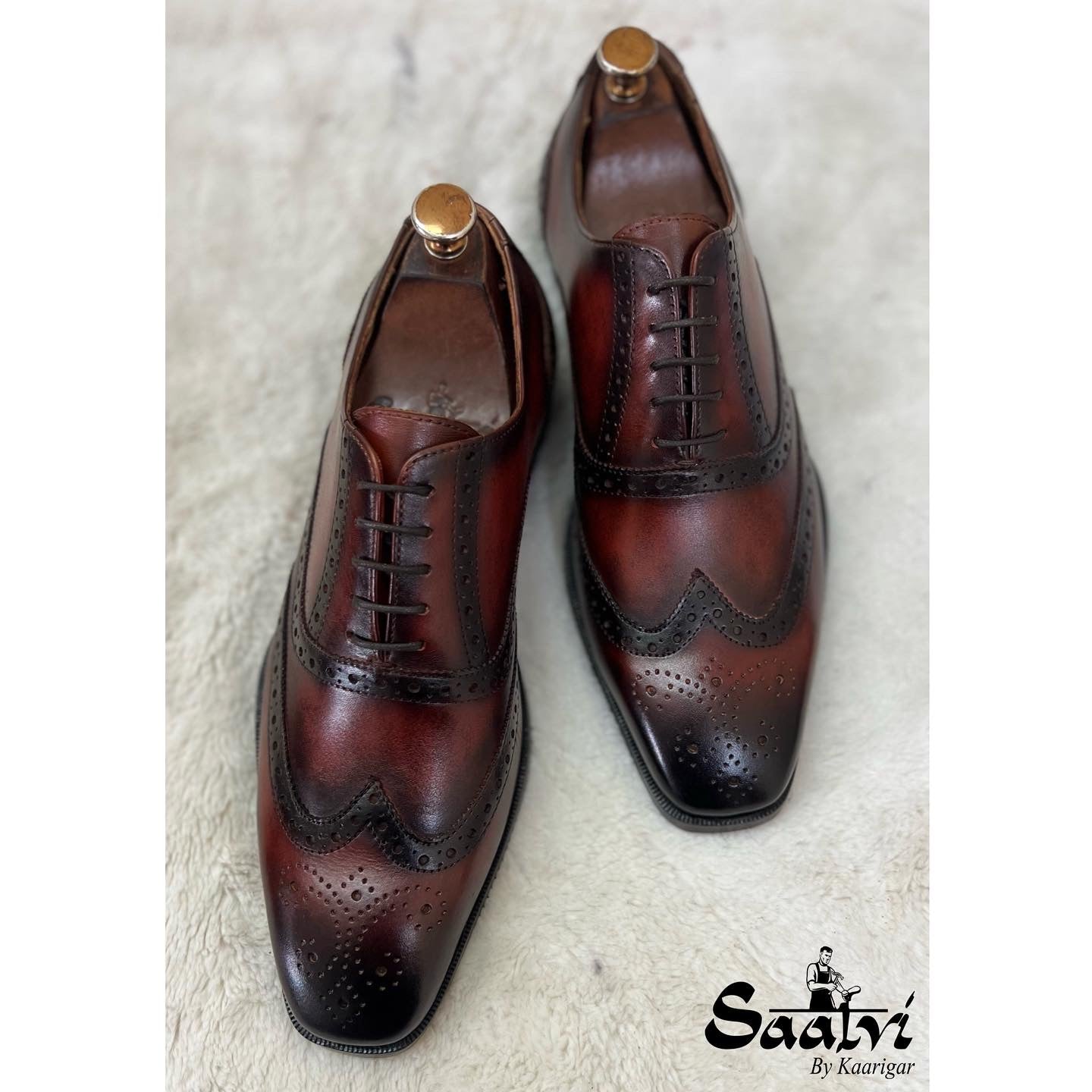 Golden Color Metal Aglets Shoelace Tips, which gives a Luxury and Fashionable look Brogue features and perforation on Toe