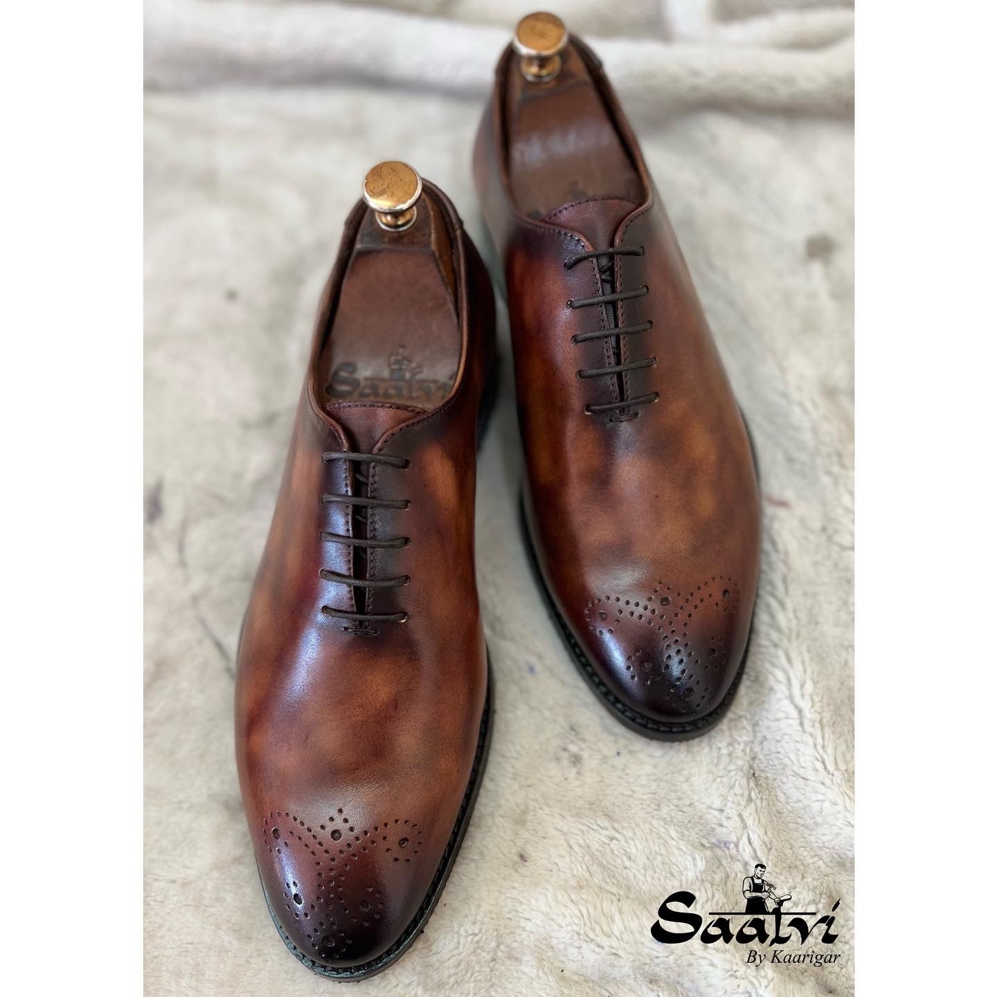 Golden Color Metal Aglets Shoelace Tips, which gives a Luxury and Fashionable look Brogue features and perforation on Toe