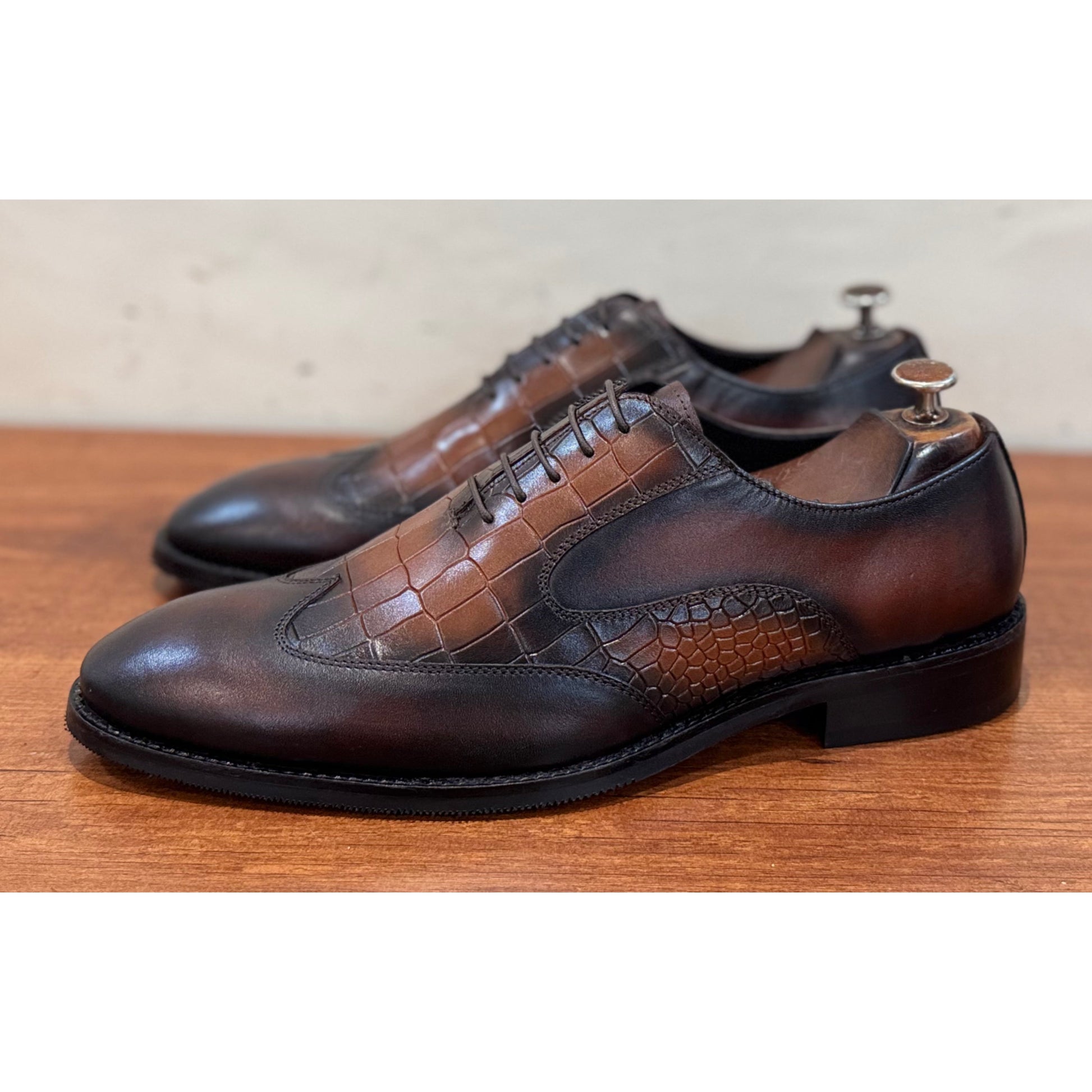 Golden Color Metal Aglets Shoelace Tips, which gives a Luxury and Fashionable look Brogue features and perforation on Toe