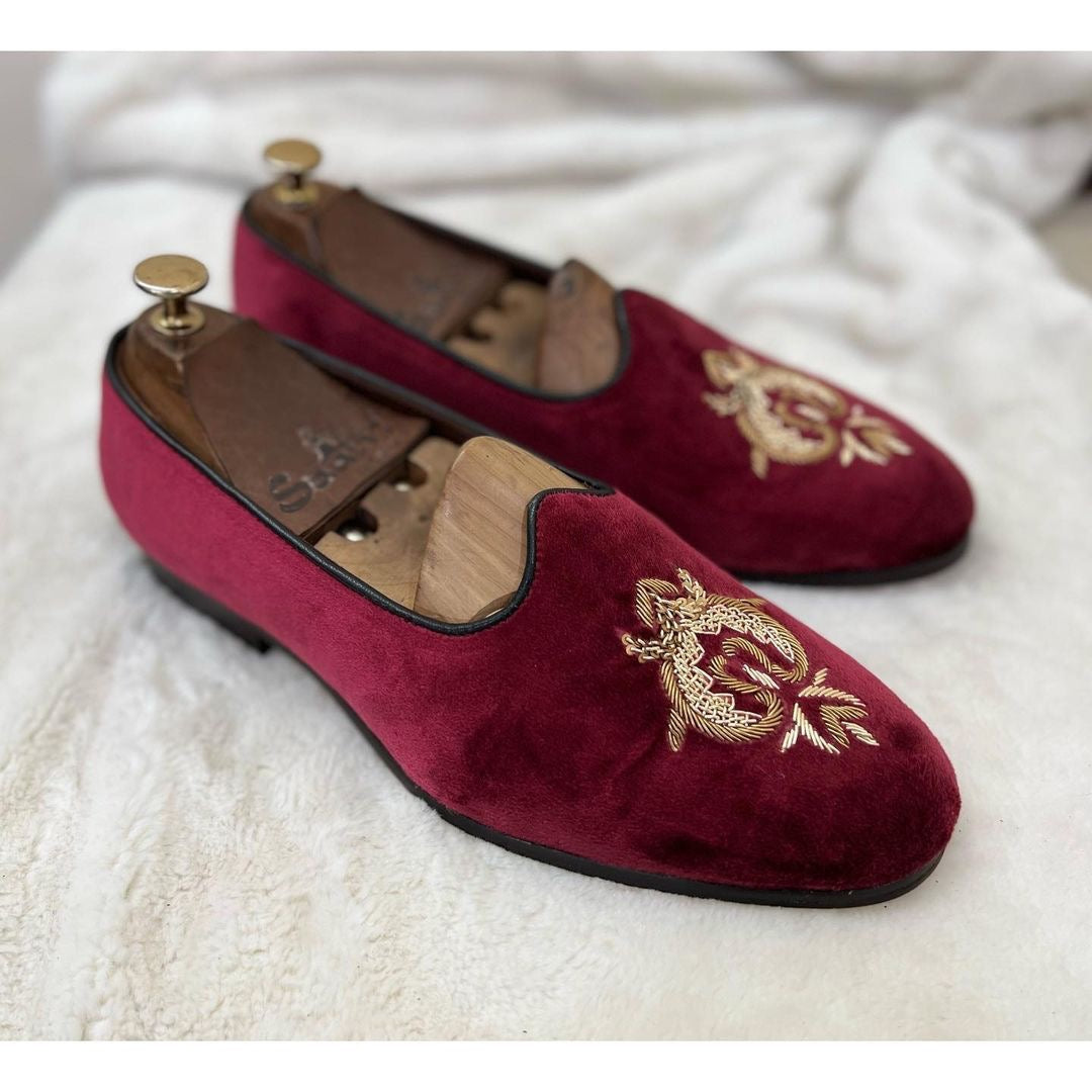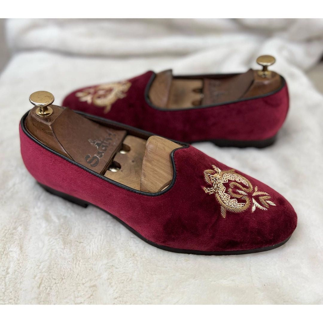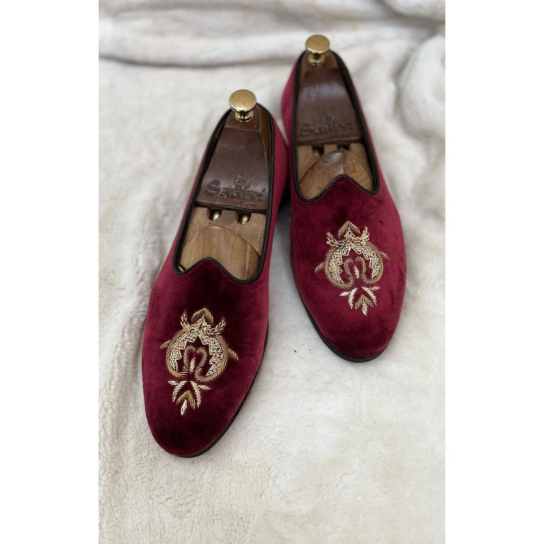 Wine Velvet Crown Zardosi Embroidery Jalsa