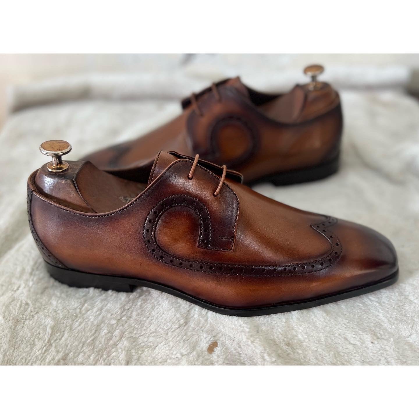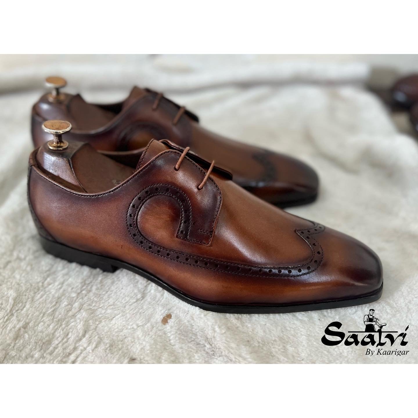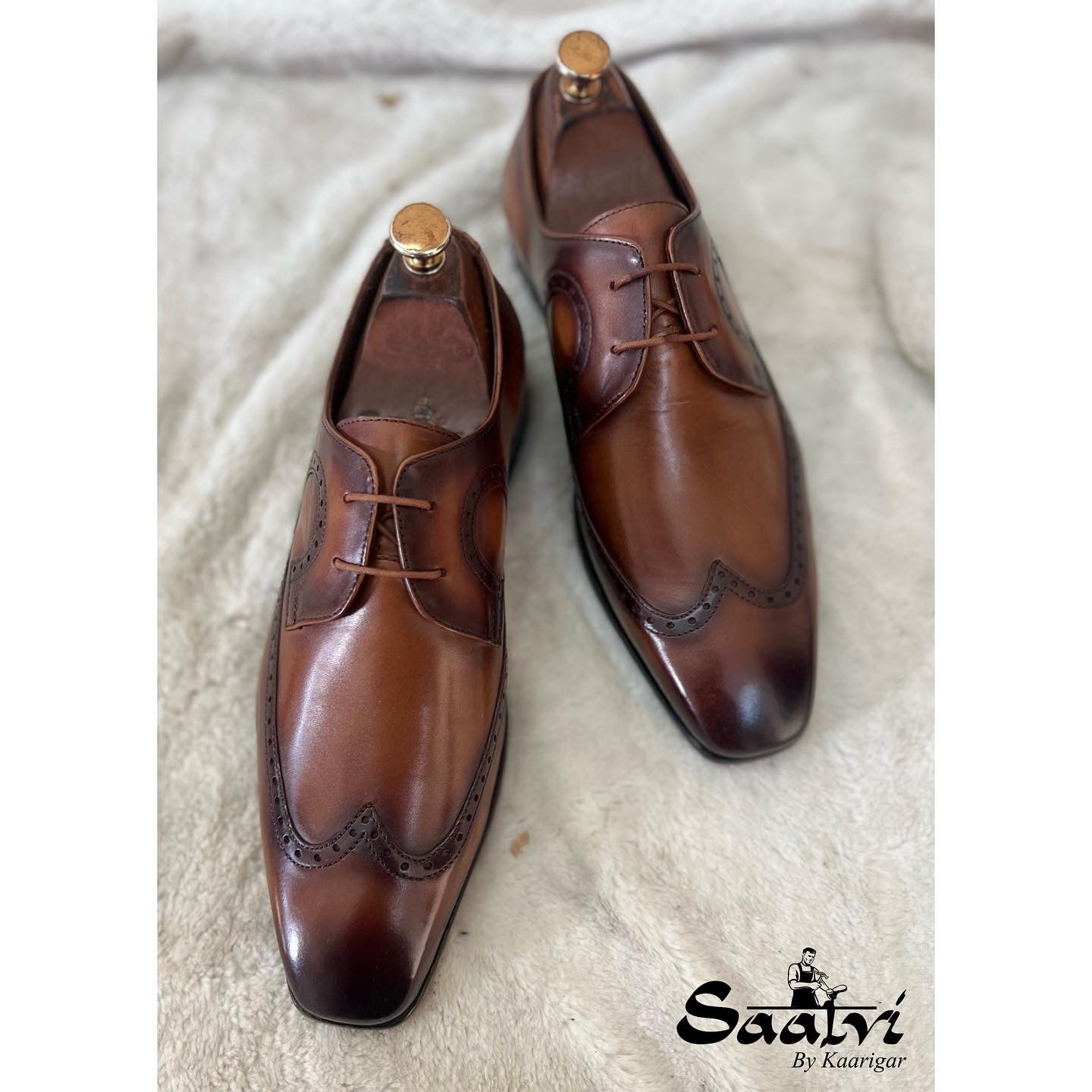 Golden Color Metal Aglets Shoelace Tips, which gives a Luxury and Fashionable look Brogue features and perforation on Toe